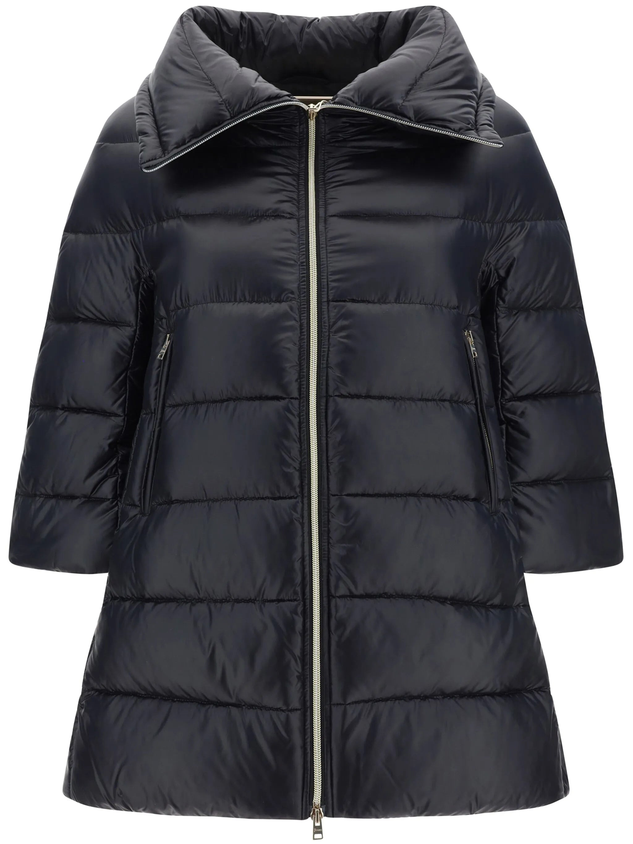 black down-feather filling two-way zip fastening padded design glossy finish quilted finish spread collar three-quarter length sleeves two side zip-fastening pockets A-line straight hem - Color: BLACK - Made in: Romania - Designer Style ID: 12017Z PI0001DIC 9300 Composition and care Lining Composition Feather Down: 100%, Outer Composition Polyamide: 100%, Lining Composition Polyamide: 100%