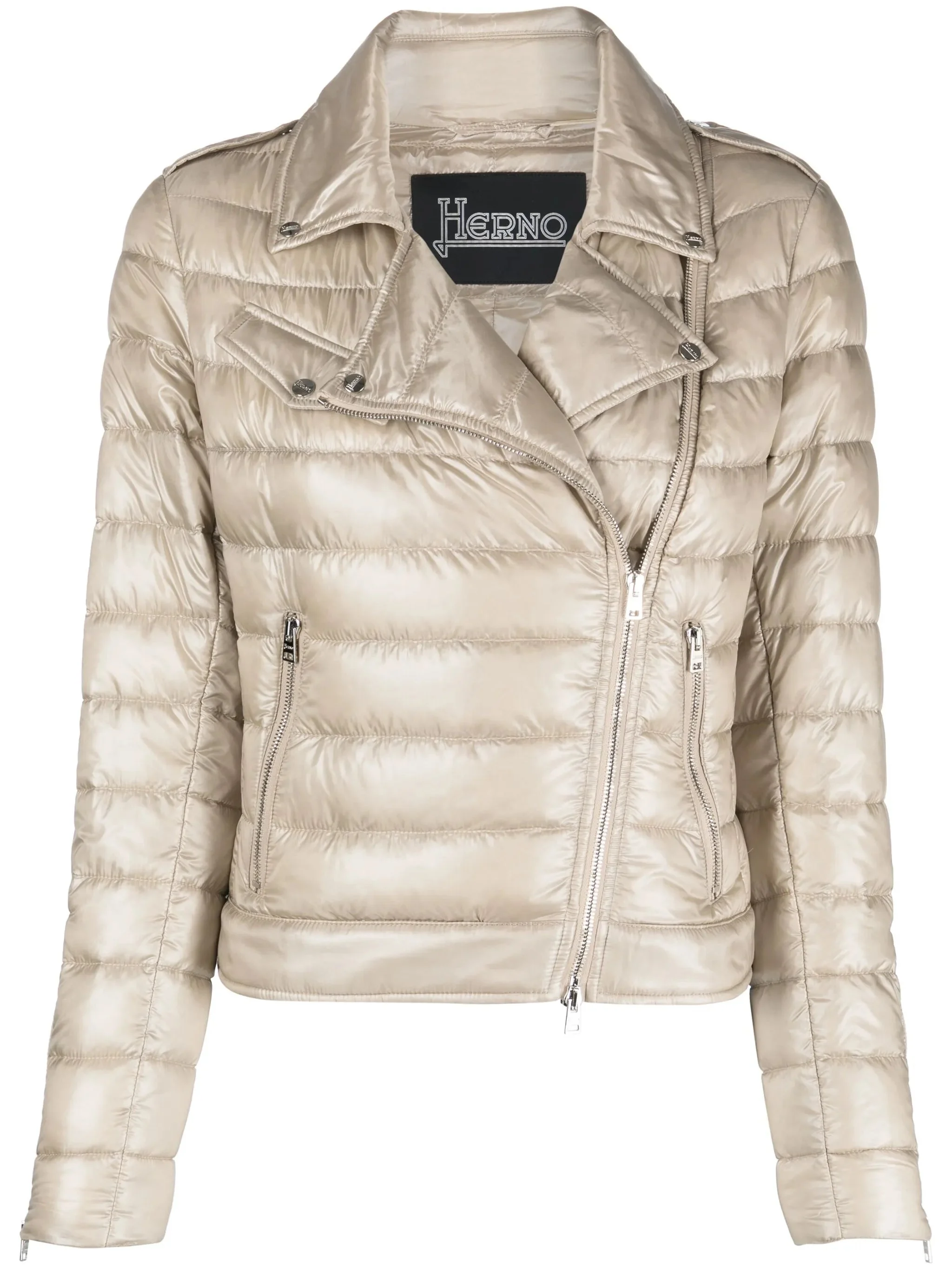 light beige down-feather filling padded design silver-tone hardware notched collar front zip fastening long sleeves cuff zips chest flap pocket two side zip-fastening pockets full lining straight hem - Color: NEUTRALS - Made in: Italy - Designer Style ID: 12017Z PI001667D 1985 Composition and care Lining Composition Feather Down: 100.0%, Outer Composition Polyamide: 100.0%, Lining Composition Polyamide: 100.0%