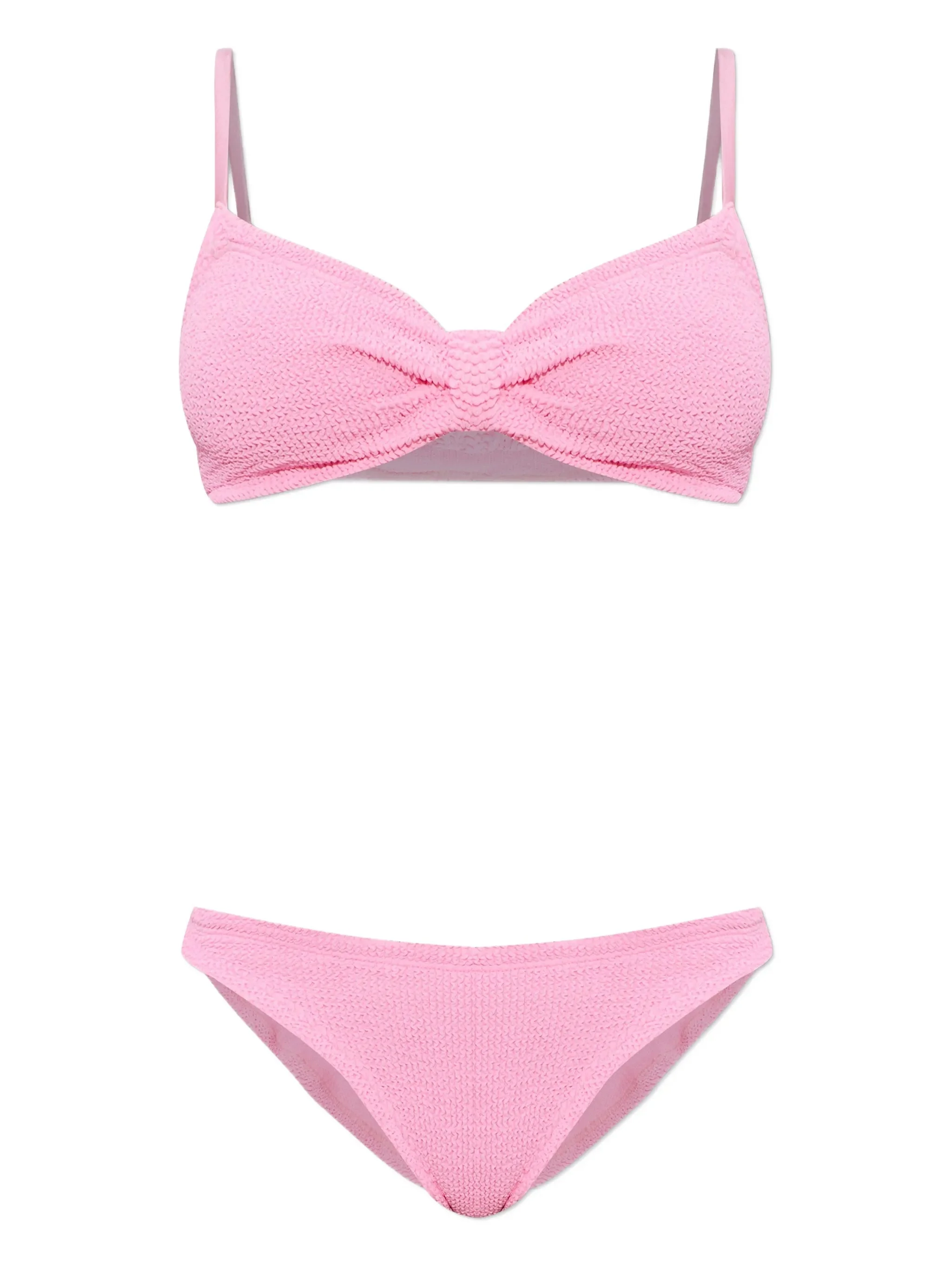 pink crinkle texture knot detail adjustable straps two-piece set Be mindful to try on swimwear over your own garments. - Color: PINK - Made in: Morocco - Designer Style ID: B-ALICIA-CR CRINKLE BUBBL Composition and care Polyamide: 97.0%, Elastane: 3.0%