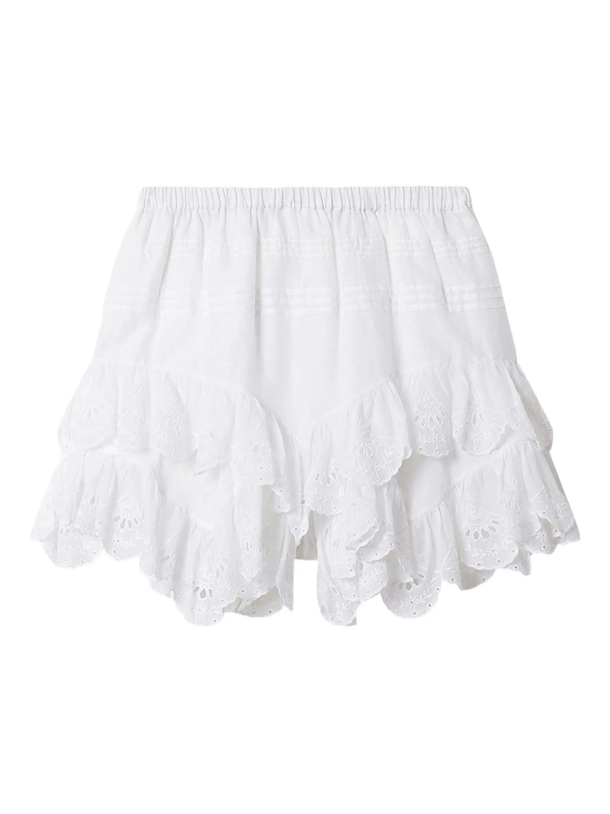 white lace detail ruffled tiers embroidery elasticated waistband scalloped hem - Color: WHITE - Made in: India - Designer Style ID: D1J05E SH0021FE 20WH Composition and care Cotton: 100.0%