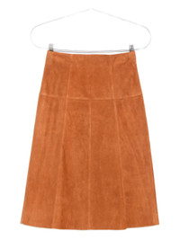 brown suede A-line shape high waist fitted waistband straight hemline - Color: BROWN - Made in: France - Designer Style ID: C3B02I JU0401FA 50CO Composition and care Lining Composition Cotton: 97.0%, Outer Composition Lamb Skin: 100.0%, Lining Composition Elastane: 3.0%