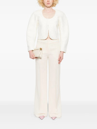 white scoop neck long sleeves - Color: WHITE - Made in: Romania - Designer Style ID: JAW00118 AW00636 1KD Composition and care Outer Composition Silk: 7.0%, Lining Composition Cotton: 48.0%, Outer Composition Acrylic: 18.0%, Outer Composition Polyamide: 10.0%, Outer Composition Polyester: 65.0%, Lining Composition Viscose: 52.0%