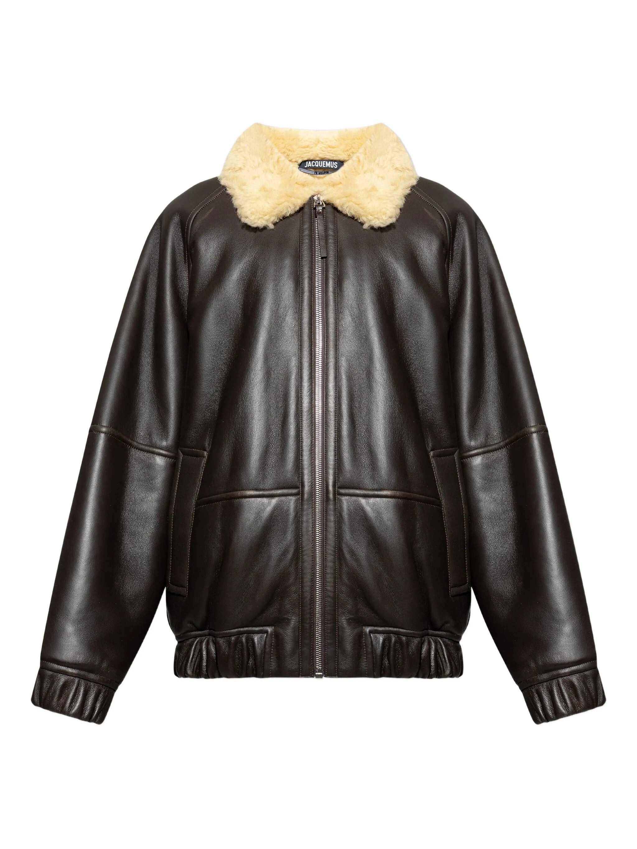 dark brown fur collar zip fastening elasticated hem panelled design embossed logo patch - Color: BROWN - Made in: Turkey - Designer Style ID: OUM00128 AC16L05 880 Composition and care Lamb Skin: 100.0%