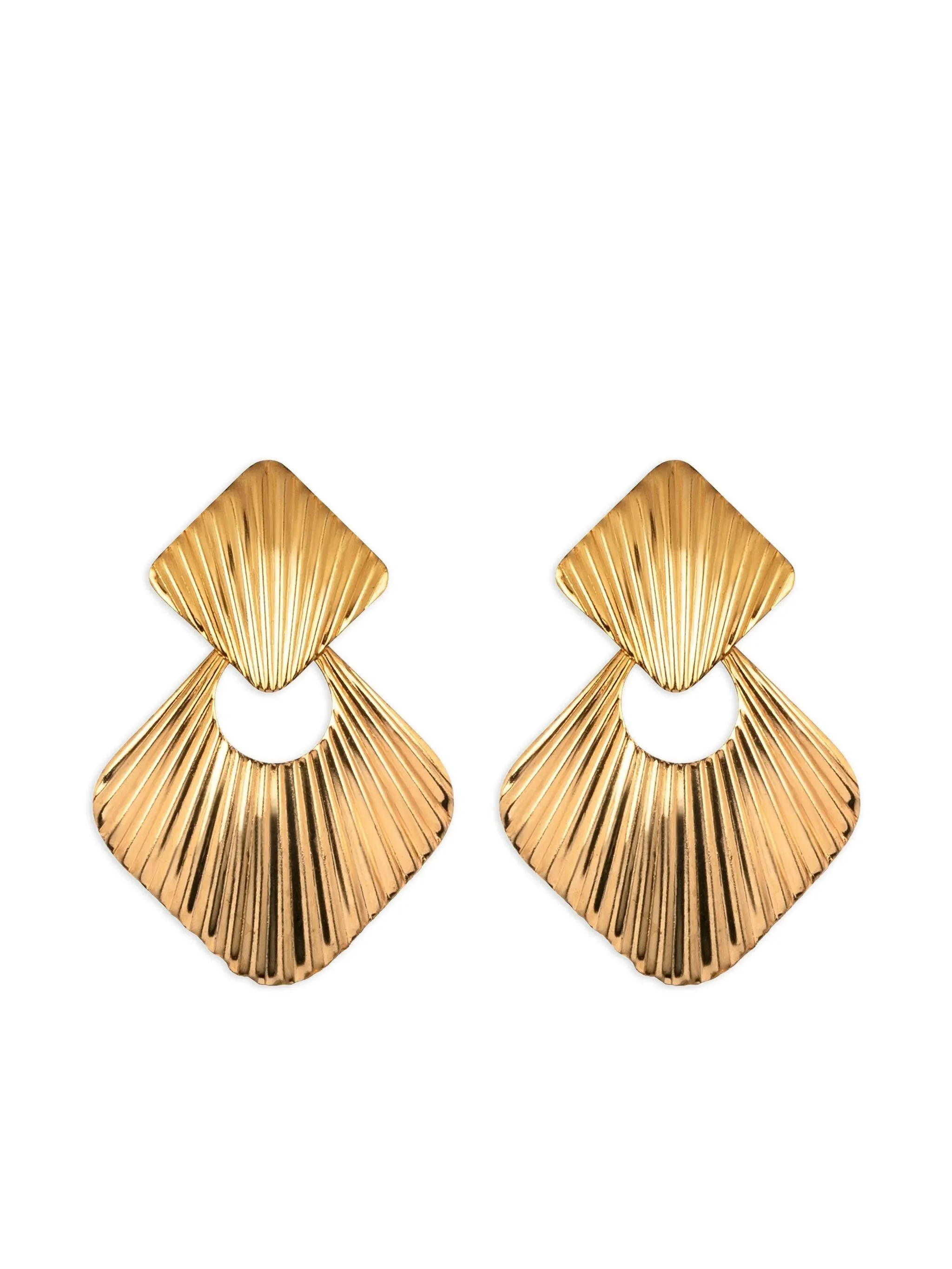gold ridged design drop style open detail post-back fastening These earrings come as a pair. Normal everyday use and external agents may reduce the lustre of gemstones and gold surfaces. To maintain, use specific, non-abrasive products specially meant for cleaning jewellery. - Color: GOLD - Made in: Bangladesh - Designer Style ID: 111RB129 GOLD Composition and care Steel: 100.0%, 18kt Gold Plated Steel: 100.0%