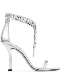 silver-tone lambskin rear zip fastening 100mm high stiletto heel crystal-embellished ankle strap square open toe branded leather insole leather sole - Color: SILVER - Made in: Italy - Designer Style ID: VERITY SANDAL SHS SILVE Composition and care Outer Composition Calf Leather: 100.0%, Lining Composition Goat Skin: 100.0%, Outer Composition Lamb Skin: 100.0%