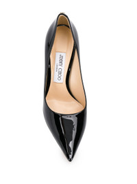 Love 100 Black Patent Leather Pointed-Toe Pumps with JC Emblem