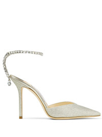 Saeda 100 Platinum Ice Dusty Glitter Pumps with Crystal Embellishment