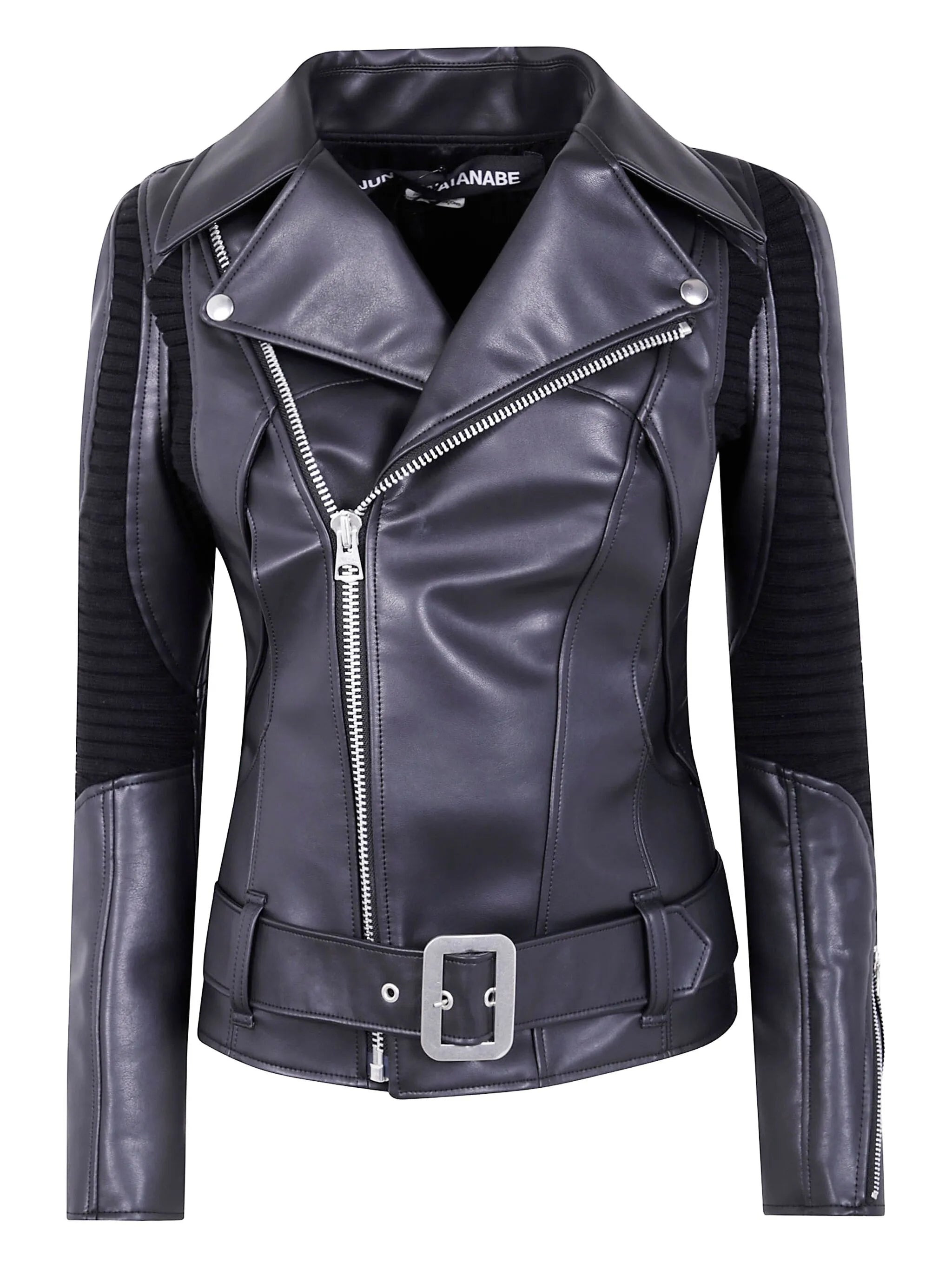 black zip fastening belted waist buckle waist ribbed knit panel long sleeves - Color: BLACK - Made in: Japan - Designer Style ID: JP-J007 BLACK Composition and care Polyester: 100.0%, Polyurethane: 100.0%