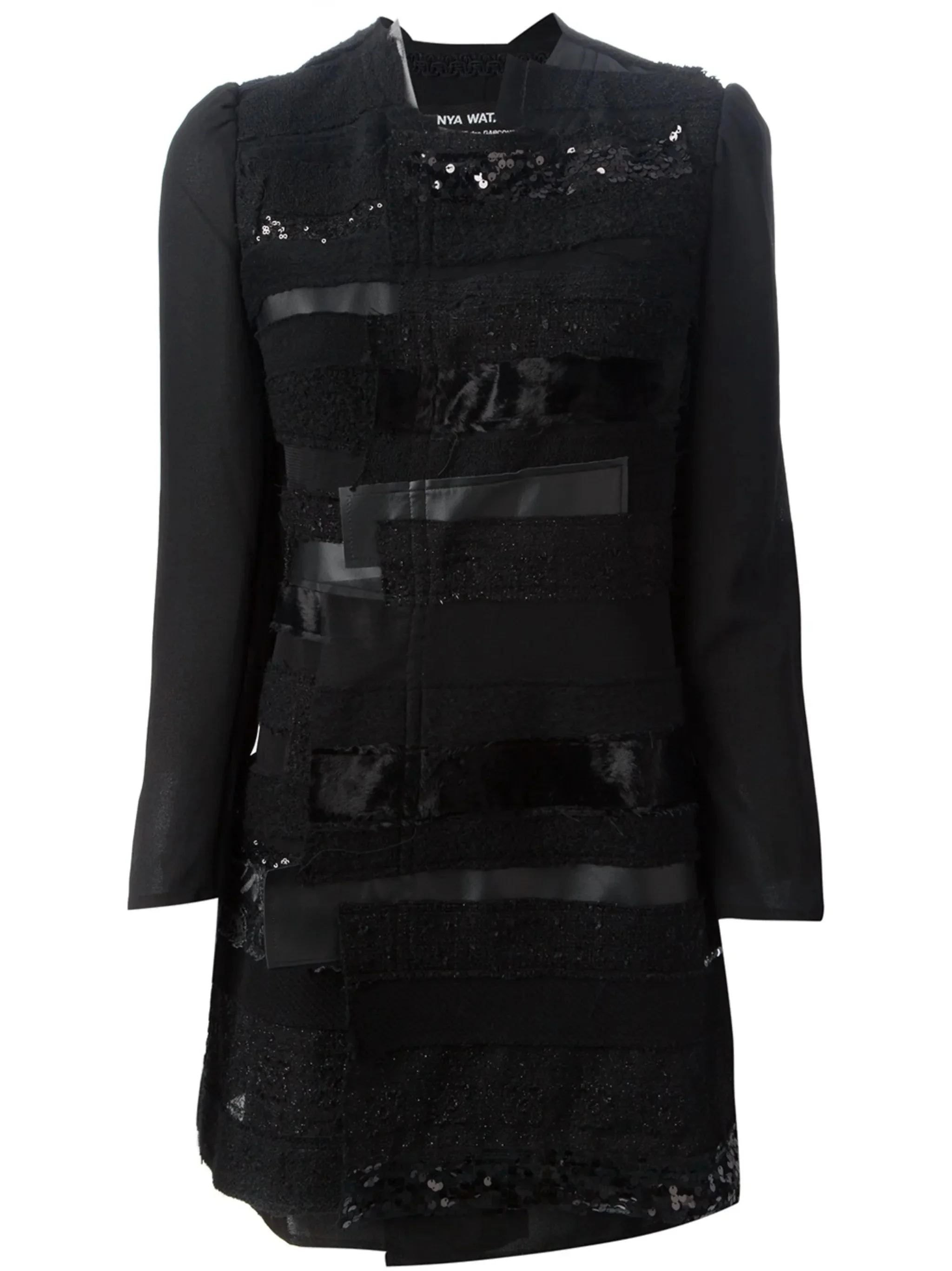Black wool and cotton blend and leather patchwork design coat from Junya Watanabe Comme Des Garcons . - Color: BLACK - Made in: Japan - Designer Style ID: JQ-J012 BLACK Composition and care Lining Composition Cotton: 50%, Leather: 100%, Nylon: 23%, Polyester: 12%, Outer Composition Polyester: 12%, Lining Composition Modal: 50%, Wool: 60%