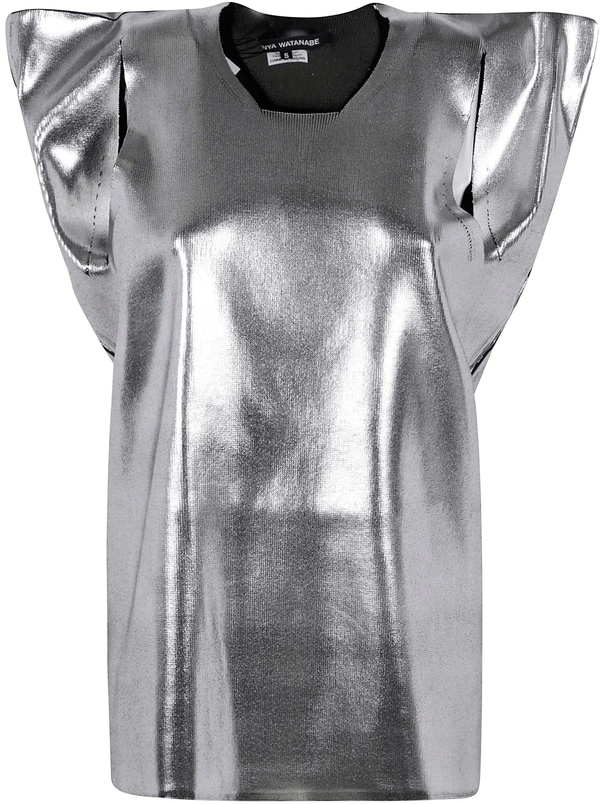silver-tone shoulder pads round neck short slit sleeves straight hem - Color: SILVER - Made in: Japan - Designer Style ID: JO-N008 BLACK Composition and care Polyester: 100.0%