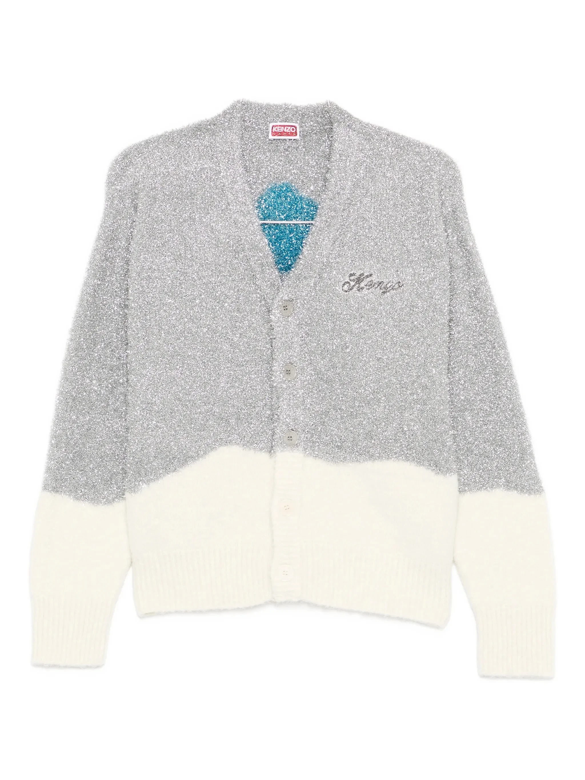 silver-tone two-tone design embroidered logo V-neck front button fastening long sleeves - Color: GREY/WHITE - Made in: Italy - Designer Style ID: FG55CA7733DE AG Composition and care Polyamide: 20.0%, Wool: 22.0%, Metallized Polyester : 35.0%, Alpaca Wool: 22.0%, Elastane: 2.0%