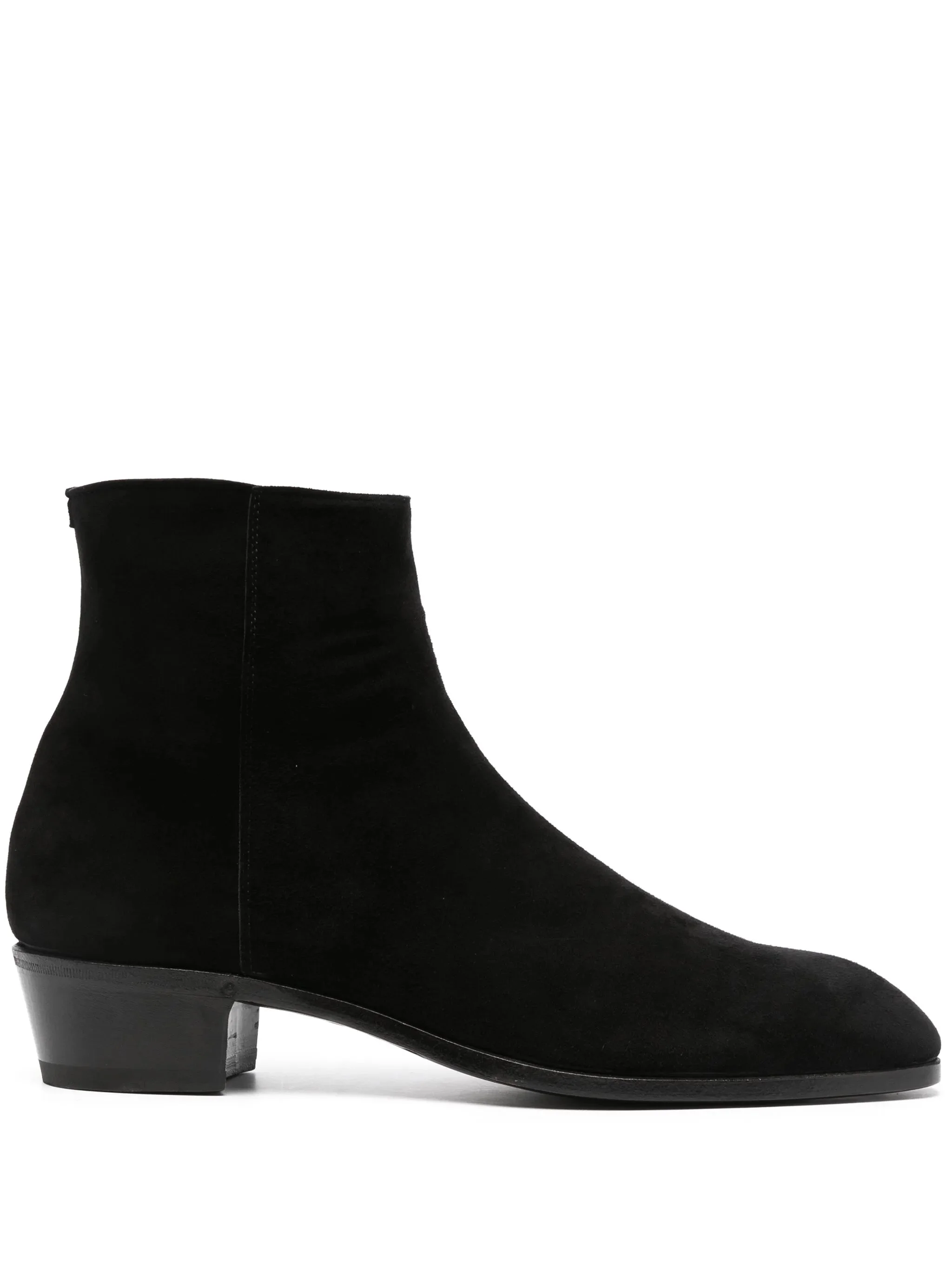 black calf suede side zip fastening 45mm low block heel ankle-length square toe branded leather insole leather lining leather sole - heel: 4.5 centimetres, height: 15.0 centimetres - Color: BLACK - Made in: Italy - Designer Style ID: IV63353 IVARVIS 999 Composition and care Lining Composition Calf Leather: 100.0%, Sole Composition Calf Leather: 100.0%, Outer Composition Calf Suede: 100.0%, Sole Composition Rubber: 100.0%