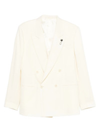 off-white double-breasted closure peak lapels button fastening welt pockets brooch detail - Color: NEUTRALS - Made in: Italy - Designer Style ID: AA6906E AAIF65519 150 Composition and care Lining Composition Cupro: 48.0%, Lining Composition Viscose: 52.0%, Outer Composition Virgin Wool: 100.0%