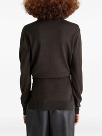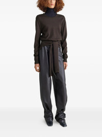 dark brown crew neck long sleeves ribbed-knit trim belted waist asymmetric hem - Color: BROWN - Made in: Portugal - Designer Style ID: TO1250 LK087 BR397 Composition and care Acrylic: 50.0%, Wool: 50.0%
