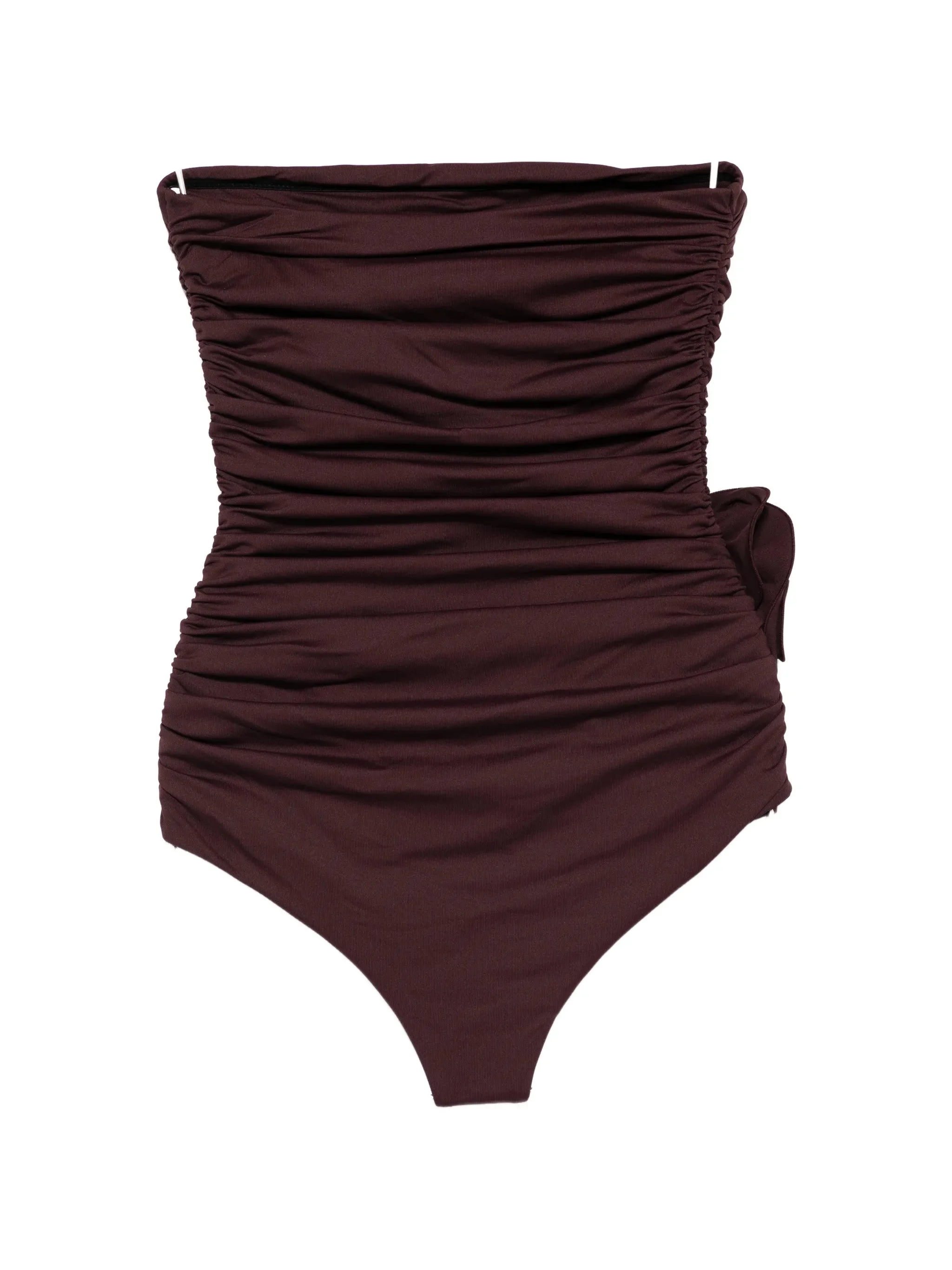 dark red floral detail ruched Be mindful to try on swimwear over your own garments. - Color: RED - Made in: Italy - Designer Style ID: STROJ KAPIELOW 03 BORDE Composition and care Polyamide: 91.0%, Elastane: 9.0%