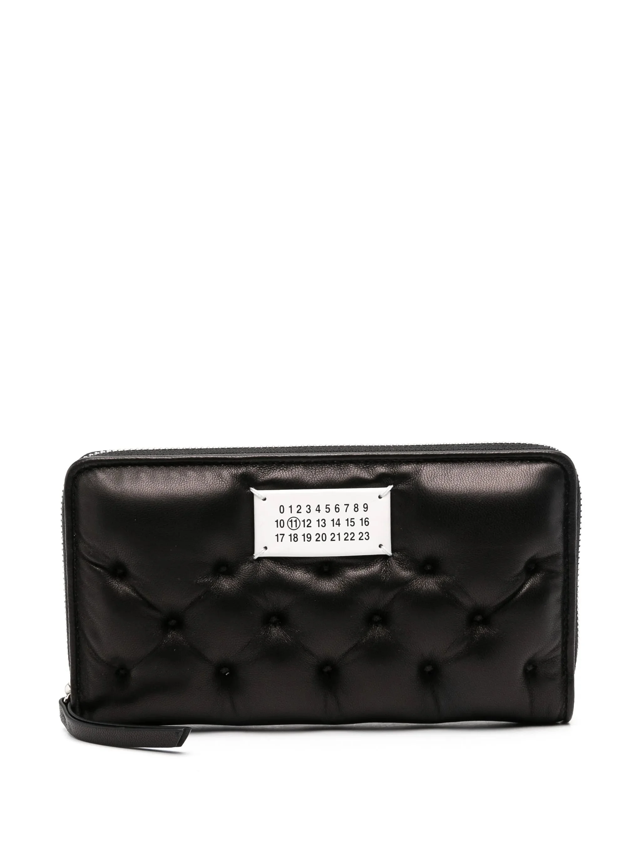 black sheepskin quilted signature numbers motif partitioned compartment internal zip-fastening pocket internal card slots internal note compartments all-around zip fastening - depth: 2.0 centimetres, length: 19.0 centimetres, width: 10.0 centimetres - Color: BLACK - Made in: Italy - Designer Style ID: P6434 SA1UI0030 T8013 Composition and care Outer Composition Calf Leather: 100.0%, Lining Composition Calf Leather: 100.0%, Lining Composition Viscose: 100.0%, Outer Composition Zinc: 100.0%, Outer Composition Brass: 100.0%, Outer Composition Sheepskin: 100.0%