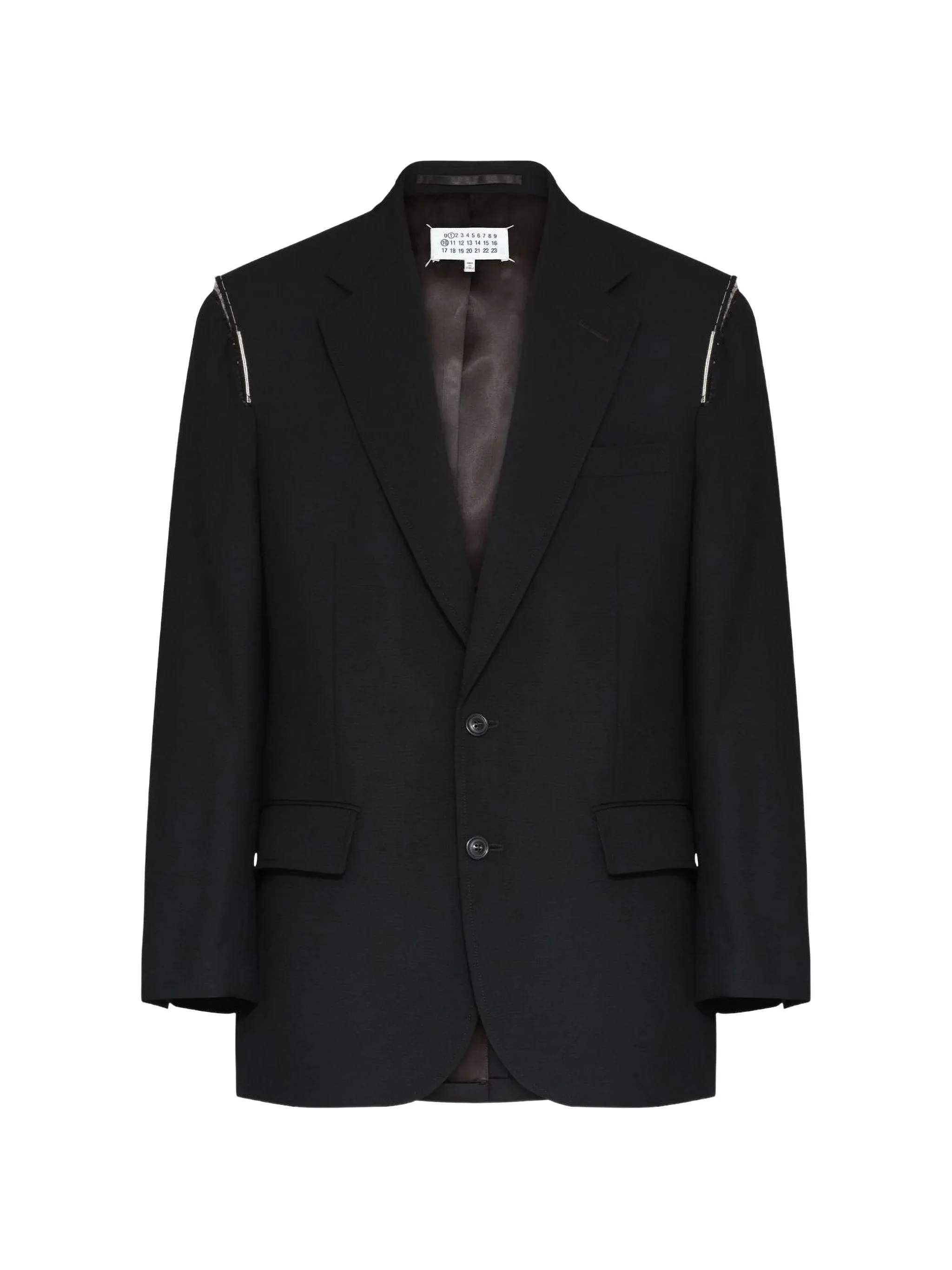 black shoulder detail two front pockets button fastening long sleeves single-breasted - Color: BLACK - Made in: Italy - Designer Style ID: M35745 S50BN0549 900 Composition and care Virgin Wool: 100.0%