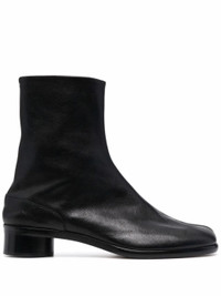 black leather split toe concealed side fastening ankle-length branded insole low heel - circumference: 26.0 centimetres, heel: 4.0 centimetres, height: 19.0 centimetres, sole height: 1.0 centimetres - Color: BLACK - Made in: Italy - Designer Style ID: PR058 S57WU0153 T8013 Composition and care Sole Composition Calf Leather: 100.0%, Lining Composition Lamb Skin: 100.0%, Outer Composition Camel Leather: 100.0%