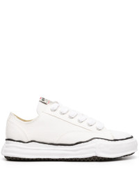 white canvas distressed effect rubber toecap contrasting border round toe front lace-up fastening branded insole flat rubber sole - Color: WHITE - Made in: Japan - Designer Style ID: A01FW702 WHITE Composition and care Cotton: 100.0%