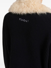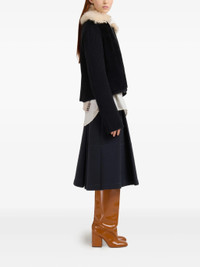 BLACK WOOL CARDIGAN WITH SHEARLING PATCHES
