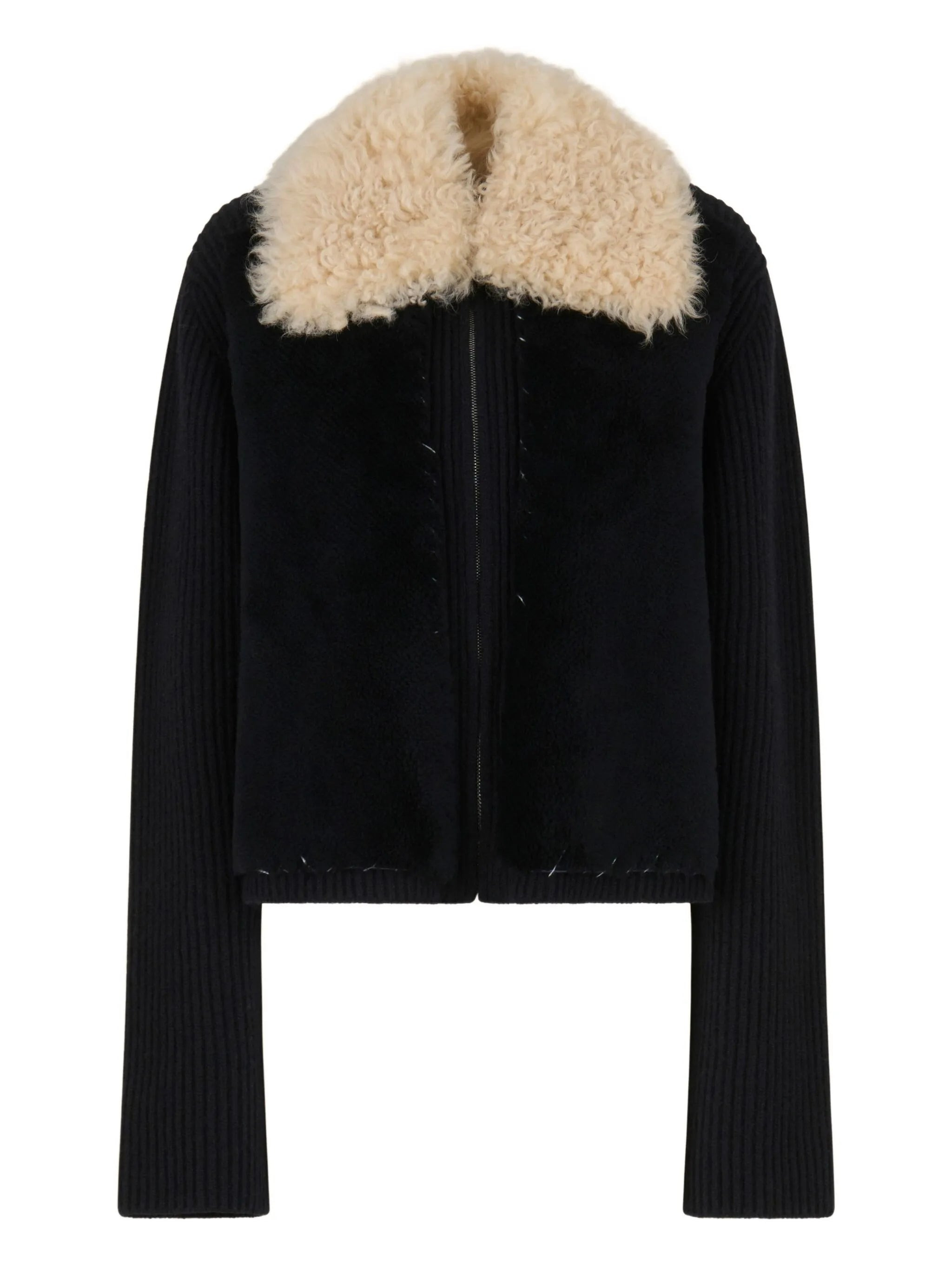 black front zip fastening long sleeves contrasting collar - Color: BLACK - Made in: Italy - Designer Style ID: UFWH27 GIMD0025NQ 00N99 Composition and care Lamb Fur: 100.0%, Virgin Wool: 100.0%