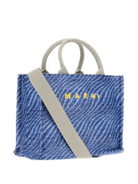 BLUE WAVY RAFFIA-EFFECT SMALL TOTE BAG