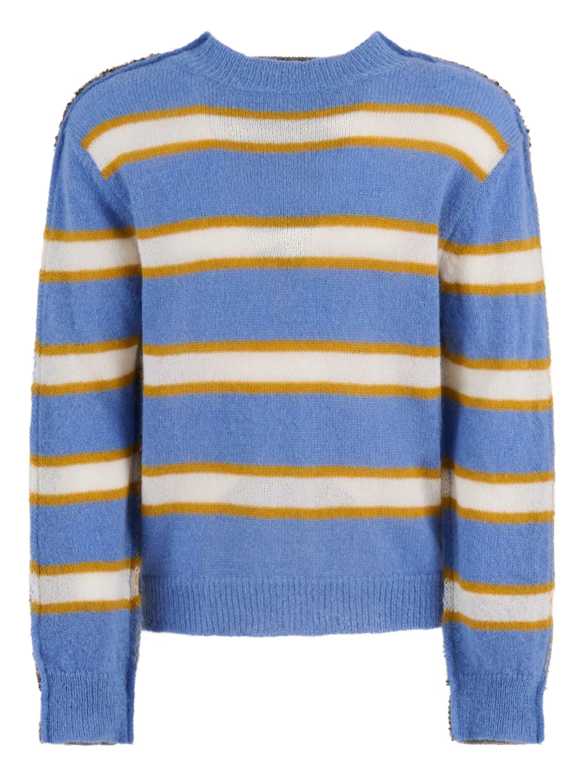 BLUE STRIPED MOHAIR AND WOOL HALF-AND-HALF SWEATER