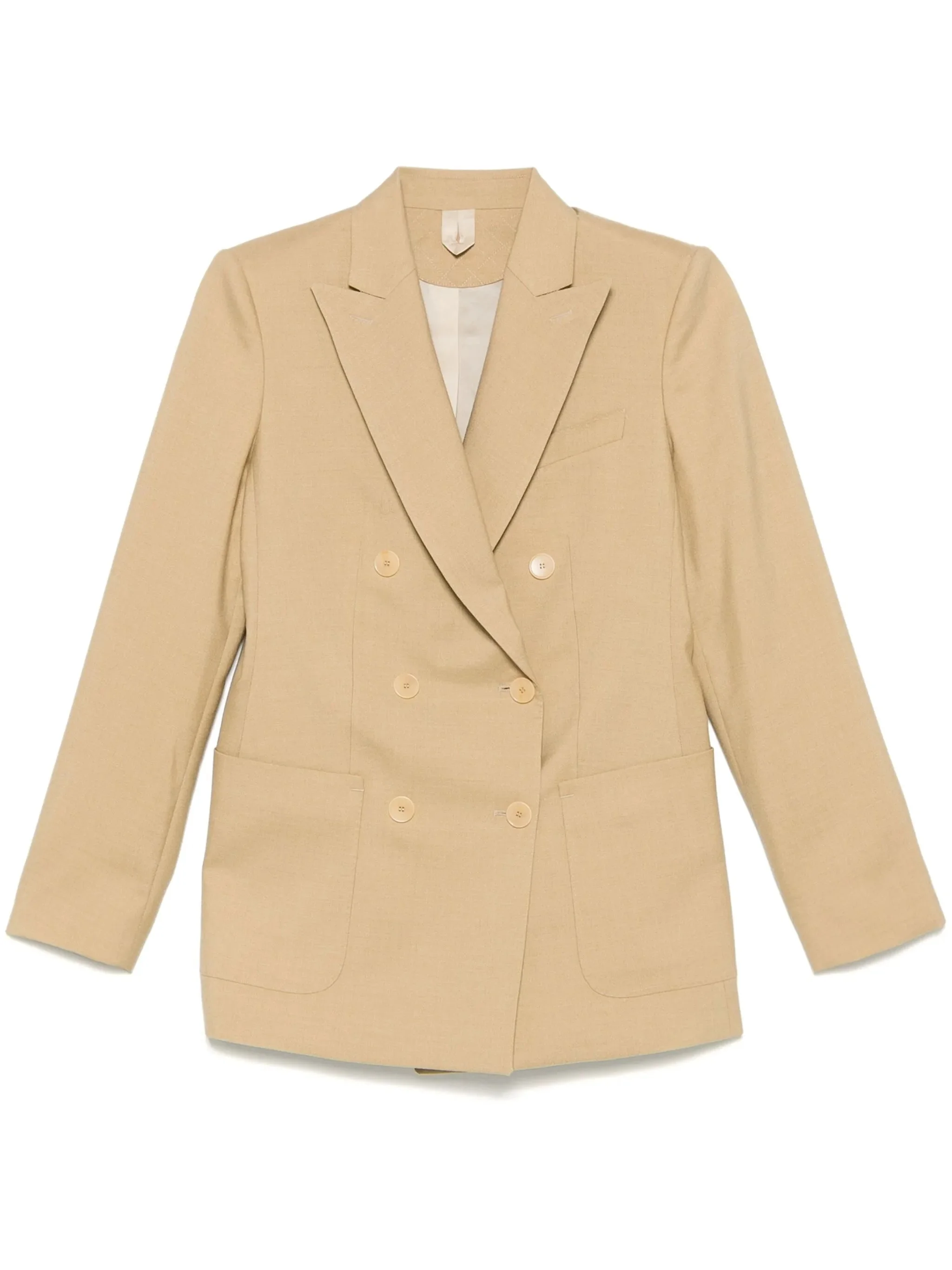 sand beige double-breasted button fastening chest welt pocket two side patch pockets English rear vents - Color: NEUTRALS - Made in: Italy - Designer Style ID: BERTA 254 001 Composition and care Outer Composition Silk: 24.0%, Lining Composition Polyester: 34.0%, Lining Composition Cupro: 1.0%, Lining Composition Viscose: 65.0%, Outer Composition Mohair: 41.0%, Outer Composition Virgin Wool: 35.0%