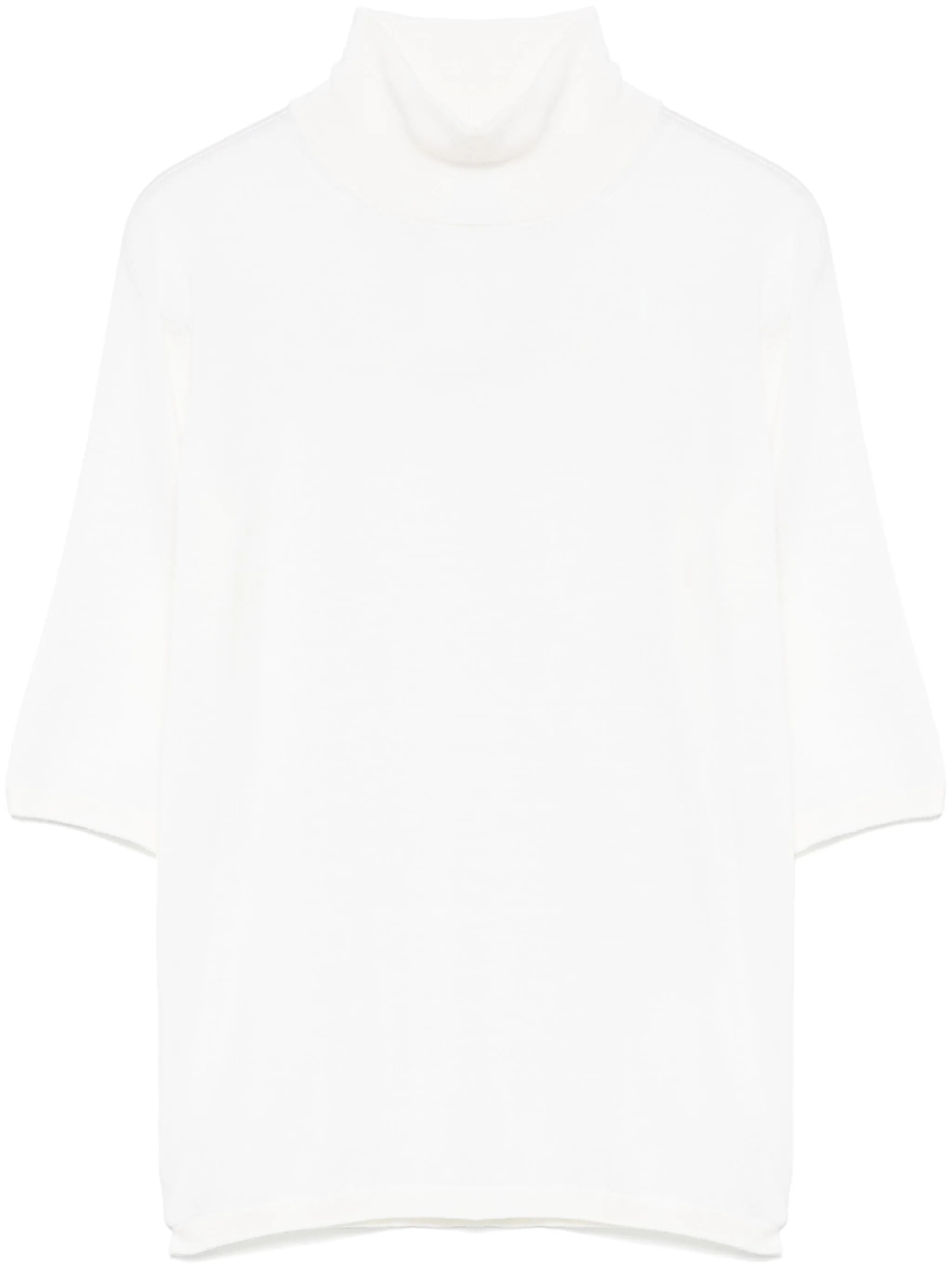 white ribbed cuffs and hem mock neck half-length sleeves - Color: WHITE - Made in: Italy - Designer Style ID: CECINA 029 001 Composition and care Virgin Wool: 100.0%