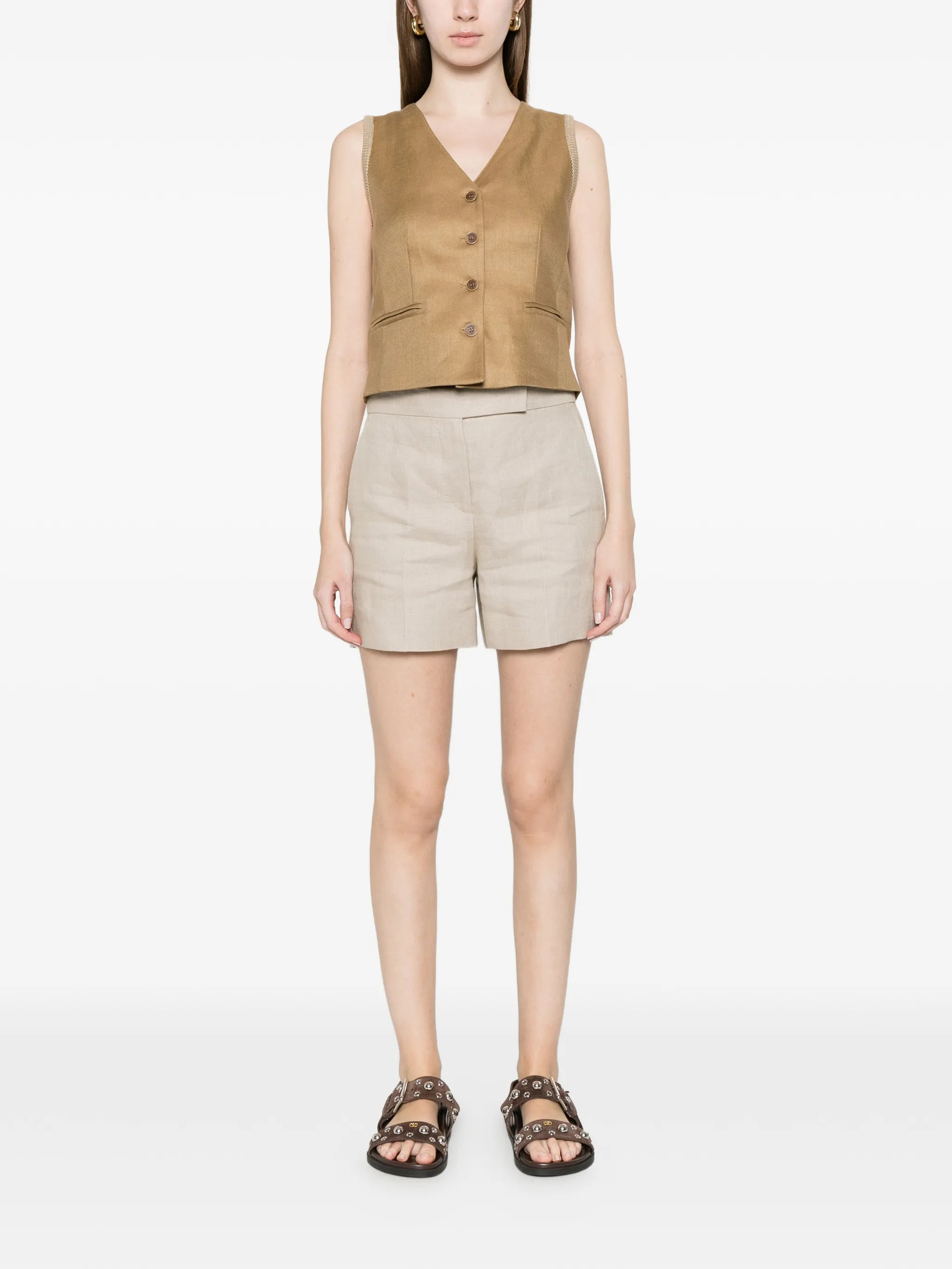 beige V-neck button fastening knitted panel front pockets sleeveless - Color: NEUTRALS - Made in: Bangladesh - Designer Style ID: MXMCALIBRI 113 002 Composition and care Outer Composition Linen/flax: 100.0%, Lining Composition Polyester: 35.0%, Lining Composition Acetate: 65.0%