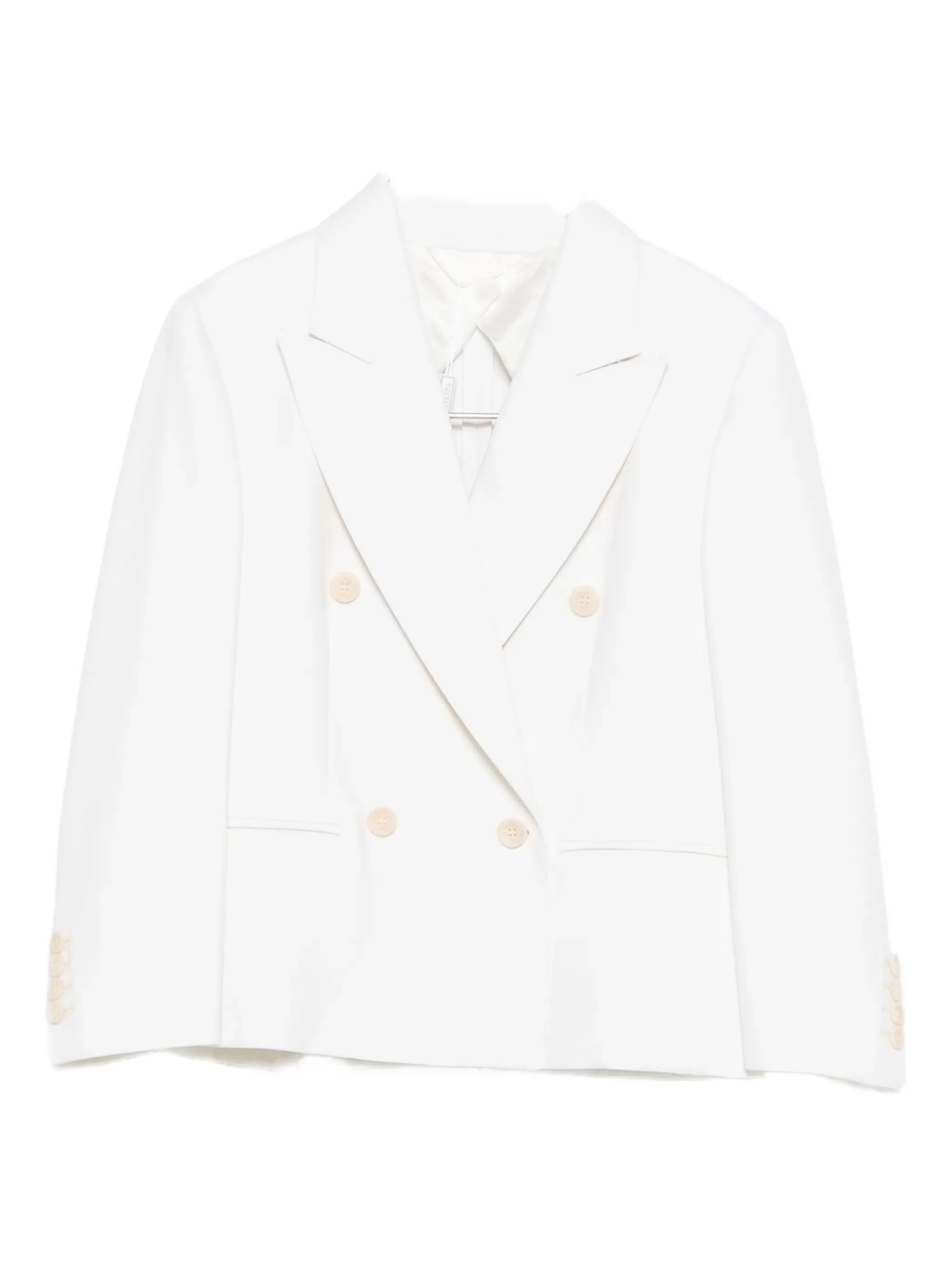white double-breasted button fastening peaked lapels long sleeves straight hem - Color: WHITE - Made in: Italy - Designer Style ID: MXMDORICO 435 001 Composition and care Virgin Wool: 98.0%, Elastane: 2.0%