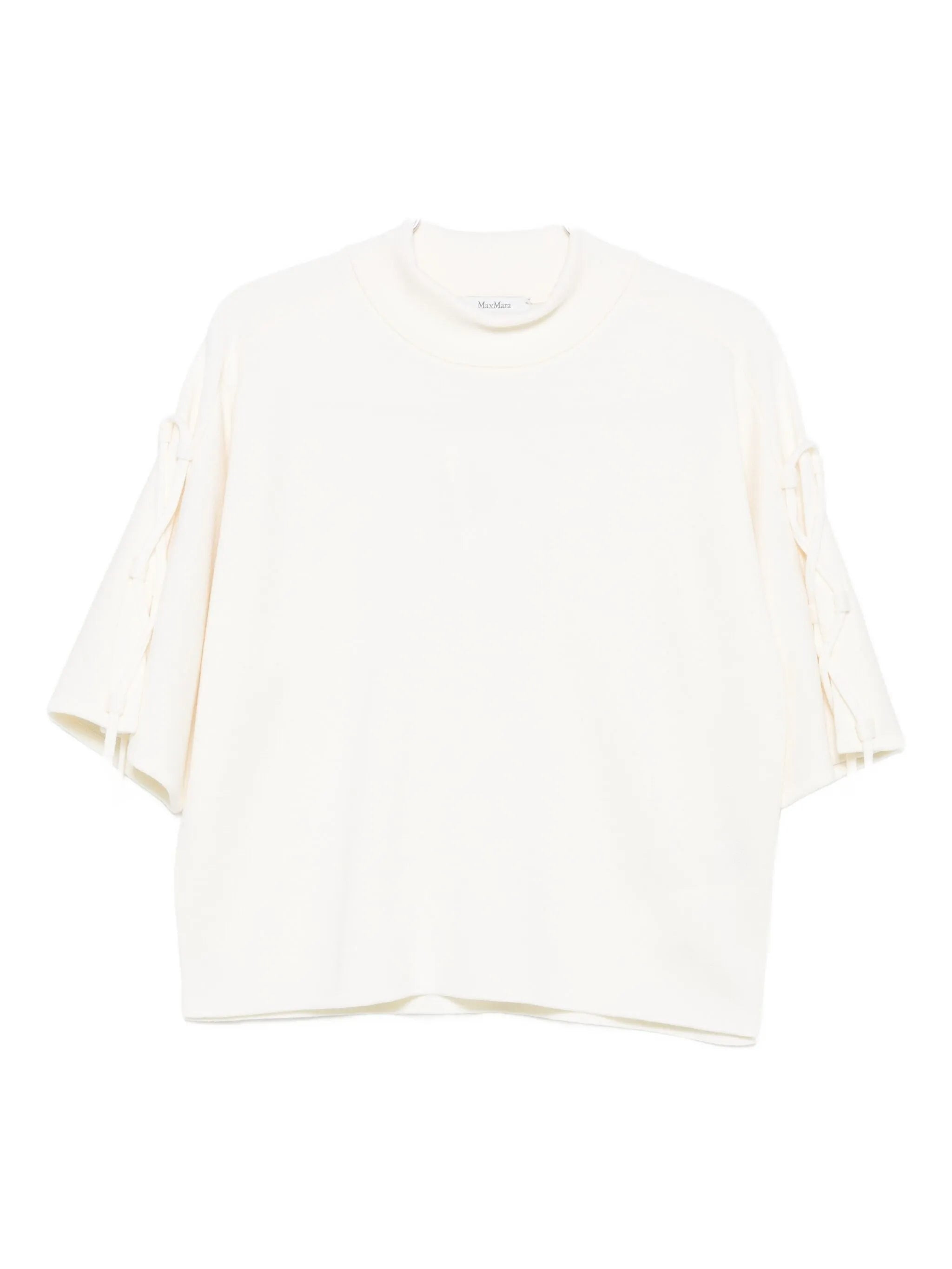 white lace-up detail at the sleeves mock neck short sleeves drop shoulder straight hem - Color: WHITE - Made in: Italy - Designer Style ID: BEVANDA 065 001 Composition and care Fabric: 100.0%