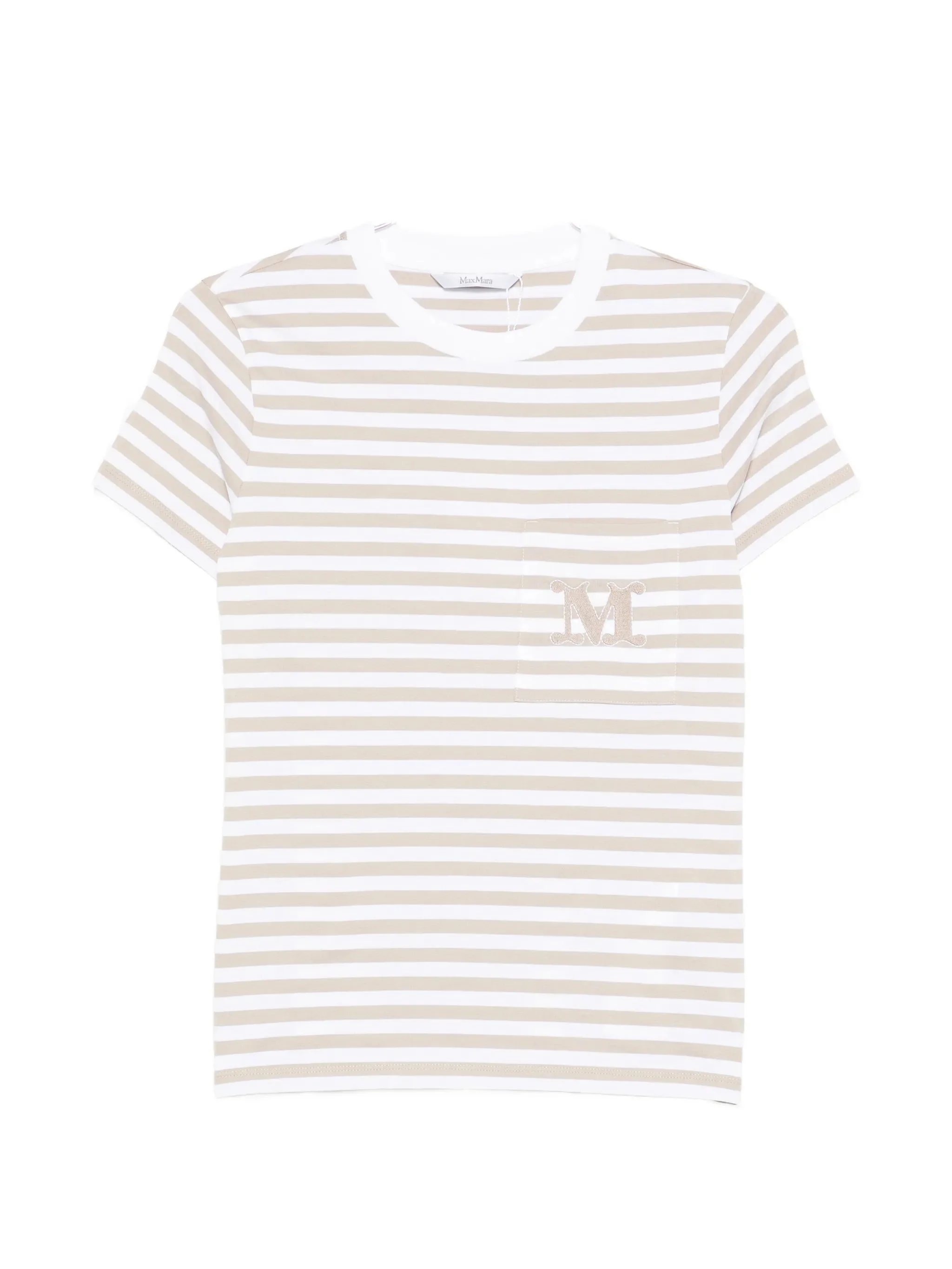 white and beige striped pocket embroidered detail round neck short sleeves - Color: WHITE/NEUTRALS - Made in: Bangladesh - Designer Style ID: MXMOBOLI 290 008 Composition and care Cotton: 100.0%