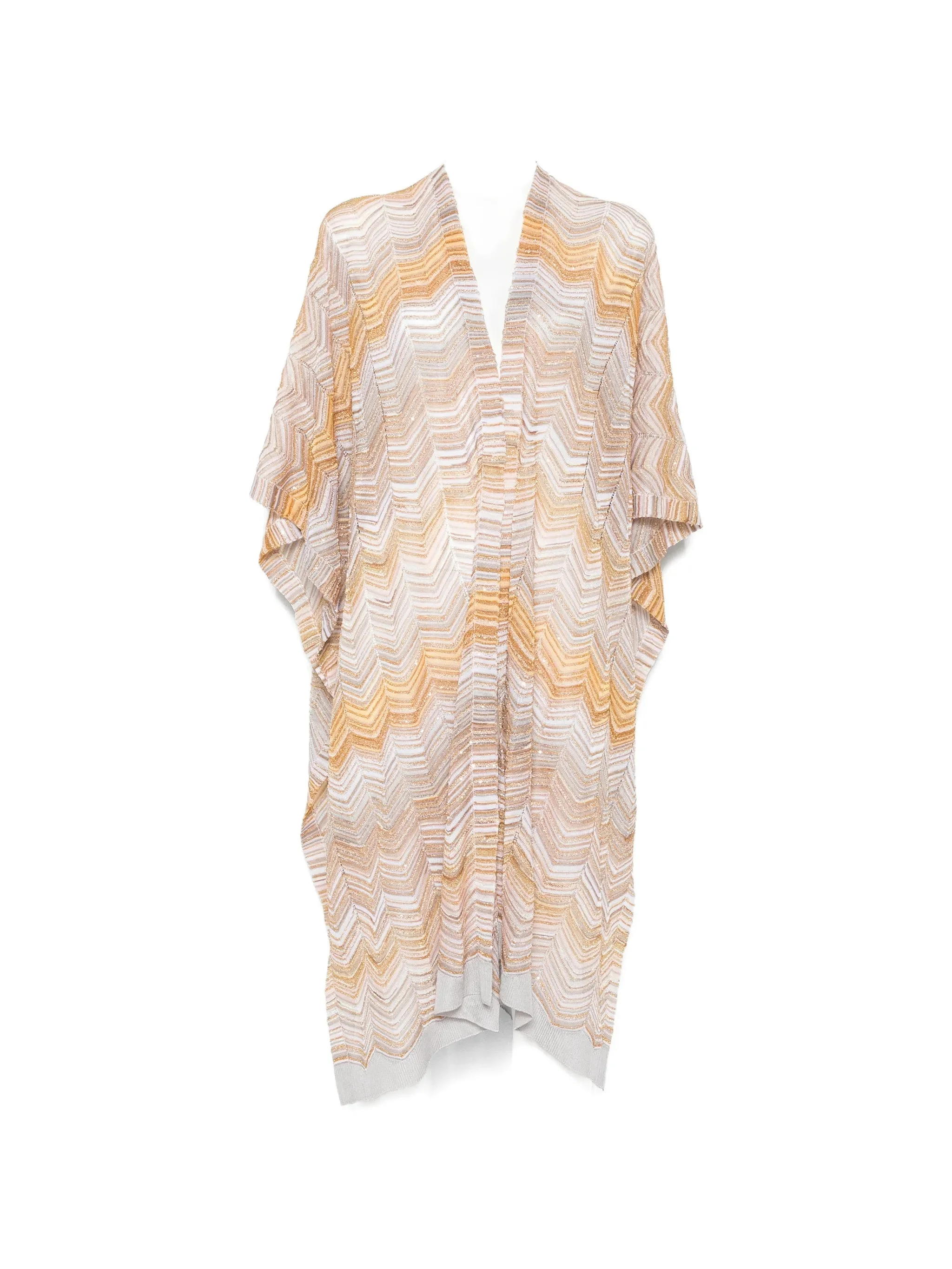 beige/yellow/multicolour chevron pattern open front The item you receive may differ slightly from the item photographed. This is due to the artisanal nature with which all Missoni products are constructed. - Color: NEUTRALS/YELLOW - Made in: Italy - Designer Style ID: MAJMVMDA504 0002 Composition and care Polyester: 14.0%, Viscose: 79.0%