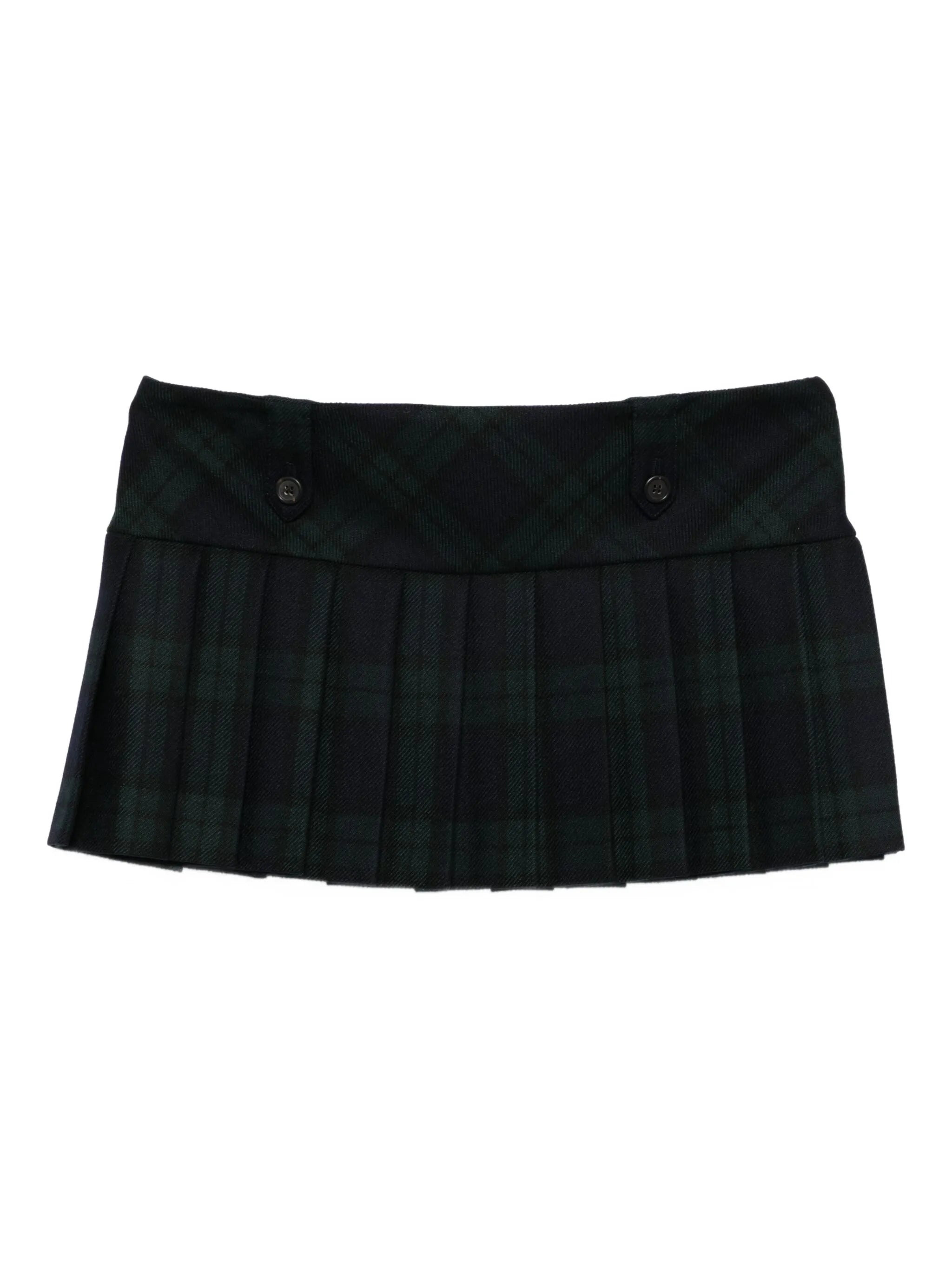 Pleated checked twill miniskirt