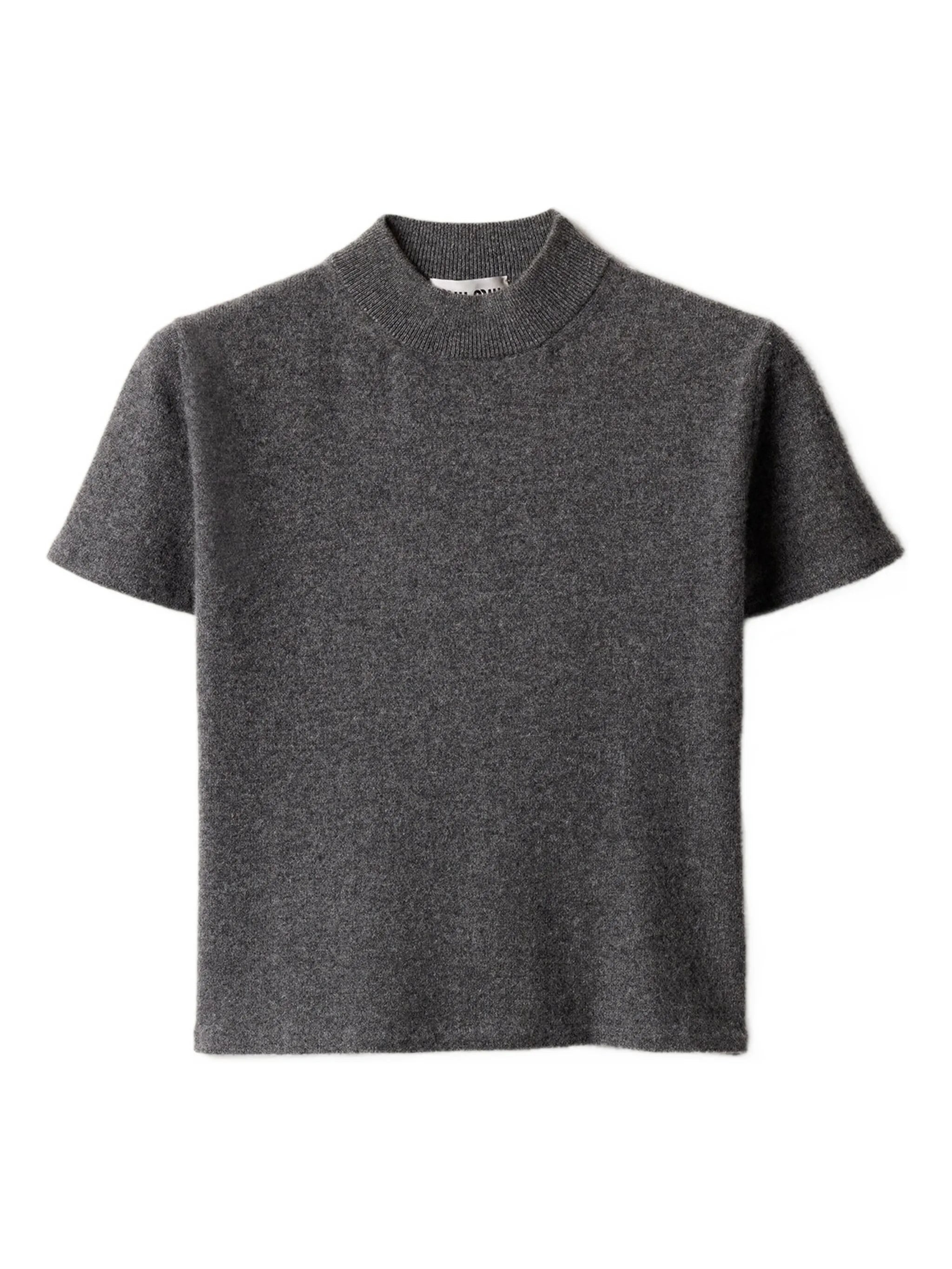 grey mock neck short sleeves ribbed texture intarsia logo - Color: GREY - Made in: Italy - Designer Style ID: MMR451 S OOO 18A9 F0480 Composition and care Cashmere: 100.0%