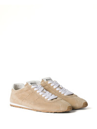 sand beige suede panelled design front lace-up fastening contrasting branded heel counter perforated detailing logo patch at the tongue round toe branded insole flat rubber sole - Color: NEUTRALS - Made in: Italy - Designer Style ID: 5E114E F 005 054 F0F24 Composition and care Suede: 100.0%