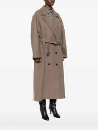 light brown double-breasted belted waist buckle fastening notched lapels button fastening - Color: BROWN - Made in: Romania - Designer Style ID: 25-4-120-3429 CLANCY TAUPE Composition and care Recycled Polyester: 20.0%, Recycled Wool: 55.0%, Recycled Acrylic: 20.0%