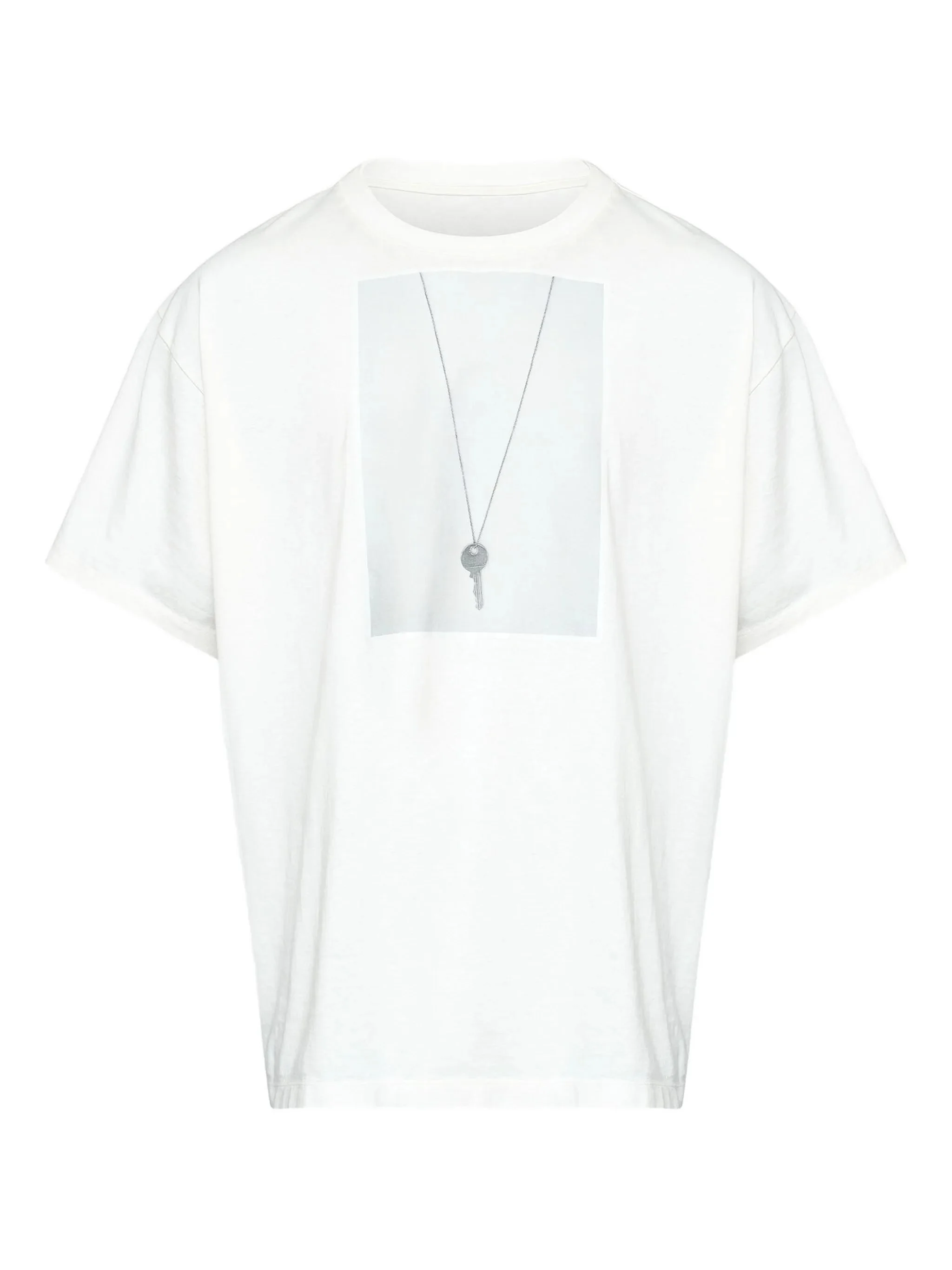 white graphic print round neck short sleeves 100% cotton - Color: WHITE - Made in: Italy - Designer Style ID: M20050 SH0GC0068 101 Composition and care Cotton: 100.0%
