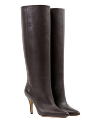 dark brown stiletto heel pointed toe sleek silhouette knee-high design - Color: BROWN - Made in: Italy - Designer Style ID: P6783 S59WW0114 T2180 Composition and care Outer Composition Calf Leather: 100.0%, Lining Composition Calf Leather: 100.0%, Sole Composition Calf Leather: 100.0%