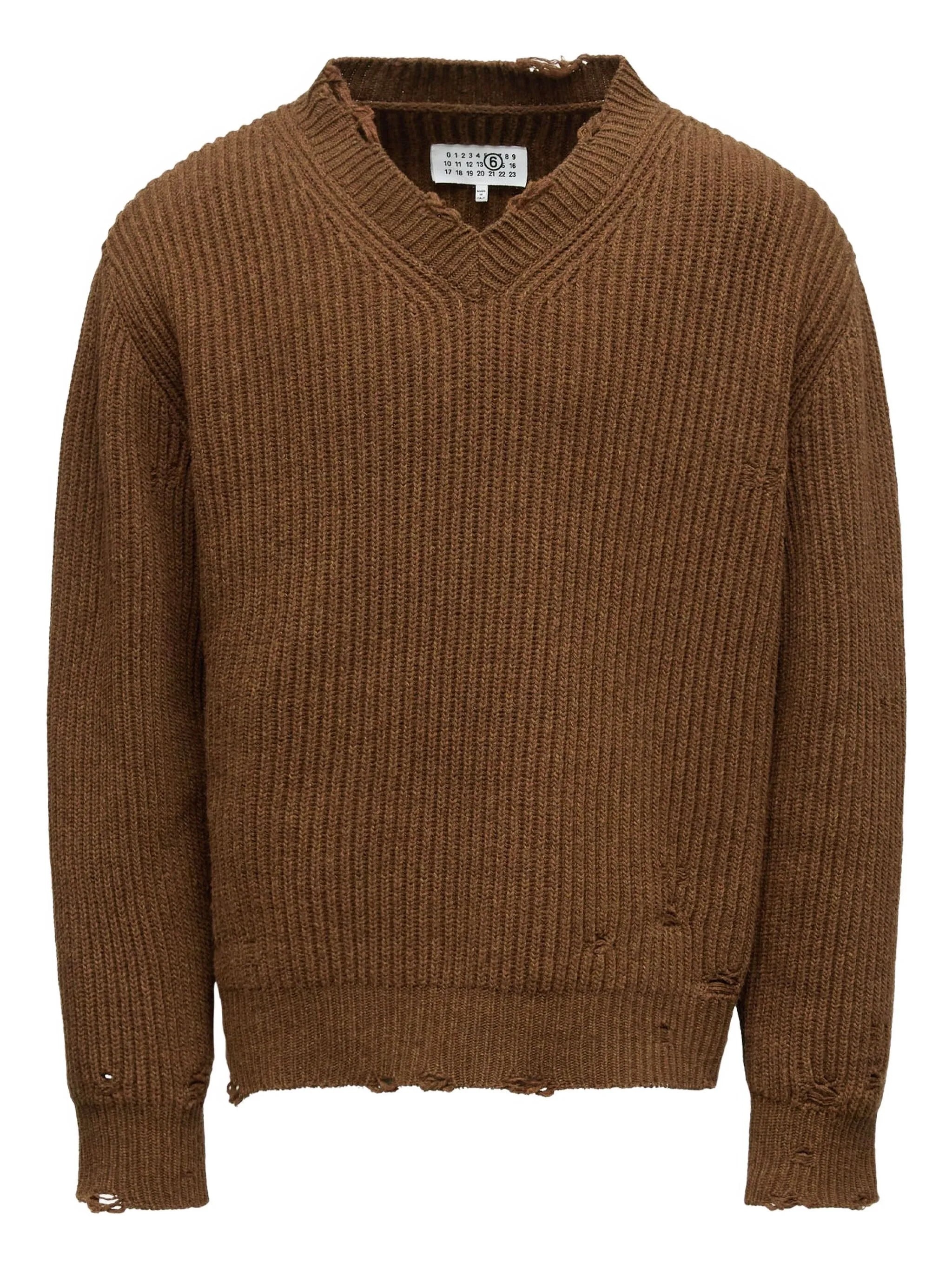 brown V-neckline ribbed texture dropped shoulders distressed detailing - Color: BROWN - Made in: Italy - Designer Style ID: M13138 SH0HN0003 142M Composition and care Polyamide: 20.0%, Wool: 80.0%