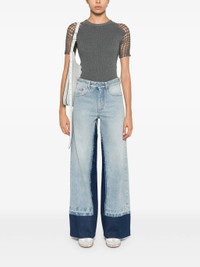 blue cotton denim layered panelled design signature single-stitch logo logo patch to the rear high-rise belt loops concealed fly and button fastening classic five pockets flared hem - Color: BLUE - Made in: Italy - Designer Style ID: S30589 S62LB0176 981 Composition and care Outer Composition Cotton: 100.0%, Lining Composition Cotton: 35.0%, Lining Composition Polyester: 65.0%