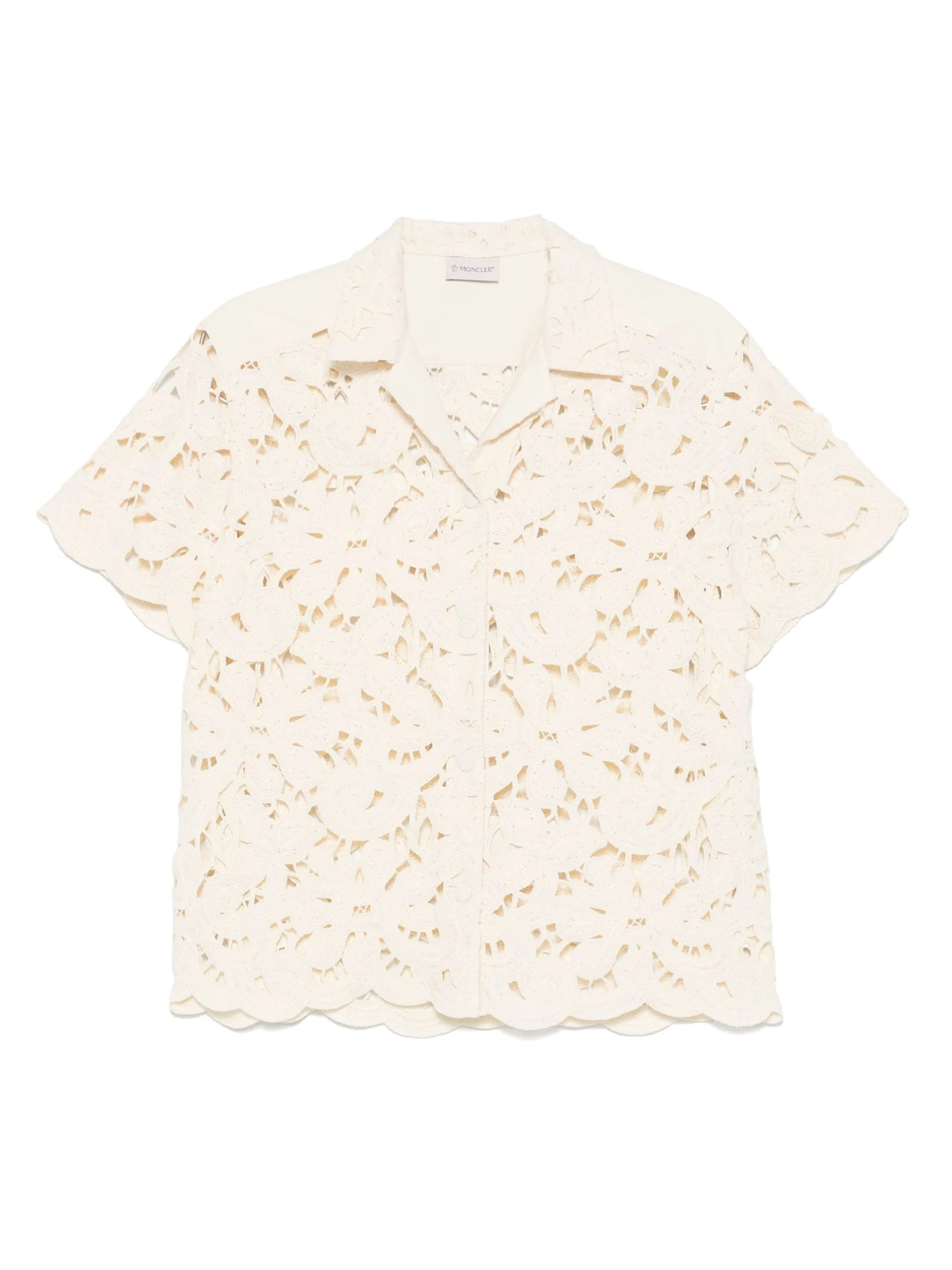 ecru front press-stud fastening camp collar short sleeves scallop hem - Color: NEUTRALS - Made in: Romania - Designer Style ID: 598LR 2F000-15 060 Composition and care Outer Composition Cotton: 88.0%, Lining Composition Cotton: 100.0%, Outer Composition Polyester: 12.0%