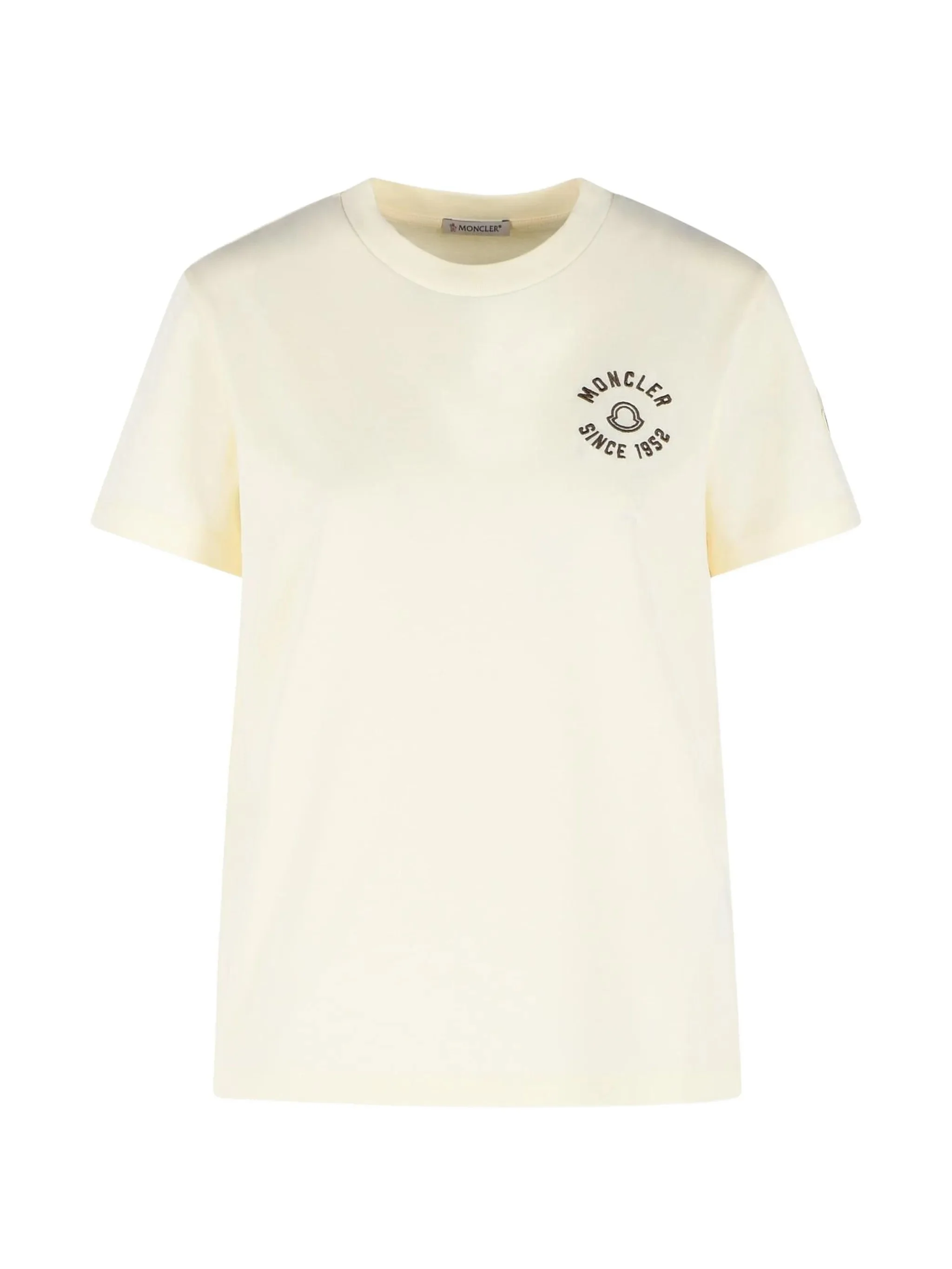 beige ribbed crew neck logo patch short sleeves cotton - Color: NEUTRALS - Made in: Turkey - Designer Style ID: 89AUO 8C000-30 034 Composition and care Cotton: 100.0%