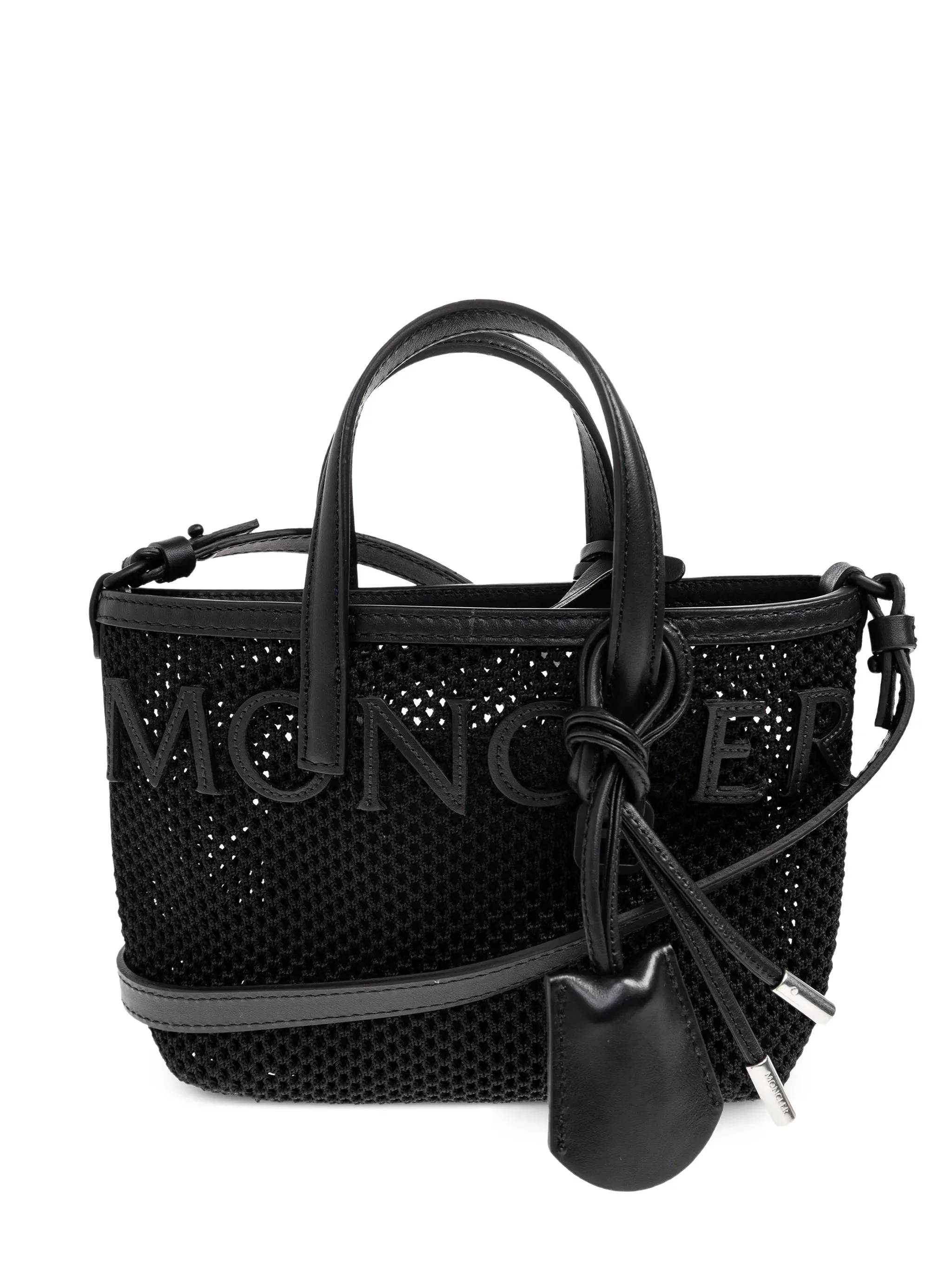 black embossed lettering top handle detachable shoulder strap attached charm knotted detail - Color: BLACK - Made in: Romania - Designer Style ID: M8644 5D000-005 999 Composition and care Outer Composition Calf Leather: 100.0%, Outer Composition Mesh: 100.0%