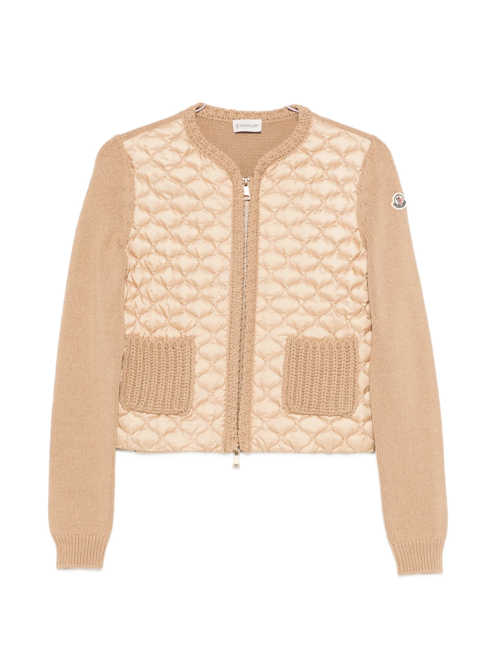 light brown quilted front knit sleeves patch pockets zip fastening round neck - Color: NEUTRALS - Made in: Moldova, Republic of - Designer Style ID: M5670 9B000-36 22B Composition and care Cotton: 75.0%, Polyamide: 25.0%