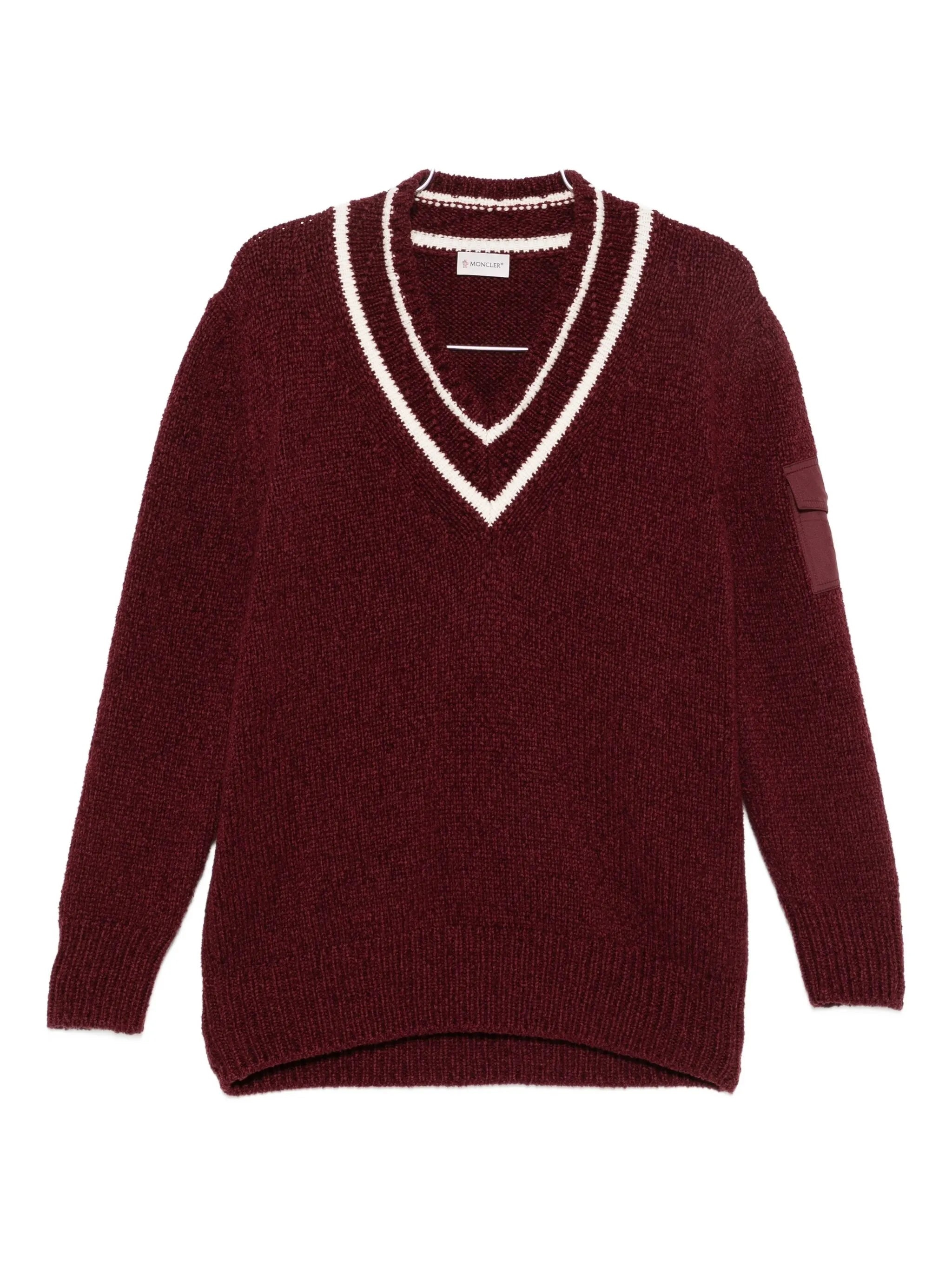 burgundy V-neck long sleeves stripe detailing ribbed trim - Color: RED - Made in: Moldova, Republic of - Designer Style ID: M5493 9D000-01 466 Composition and care Cotton: 22.0%, Polyamide: 24.0%, Polyester: 100.0%, Virgin Wool: 54.0%