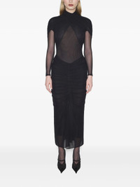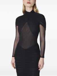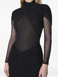 black high neck draped detailing long sleeves sheer panel gathered skirt - Color: BLACK - Made in: Tunisia - Designer Style ID: BO0284 1999 Composition and care Polyamide: 100.0%