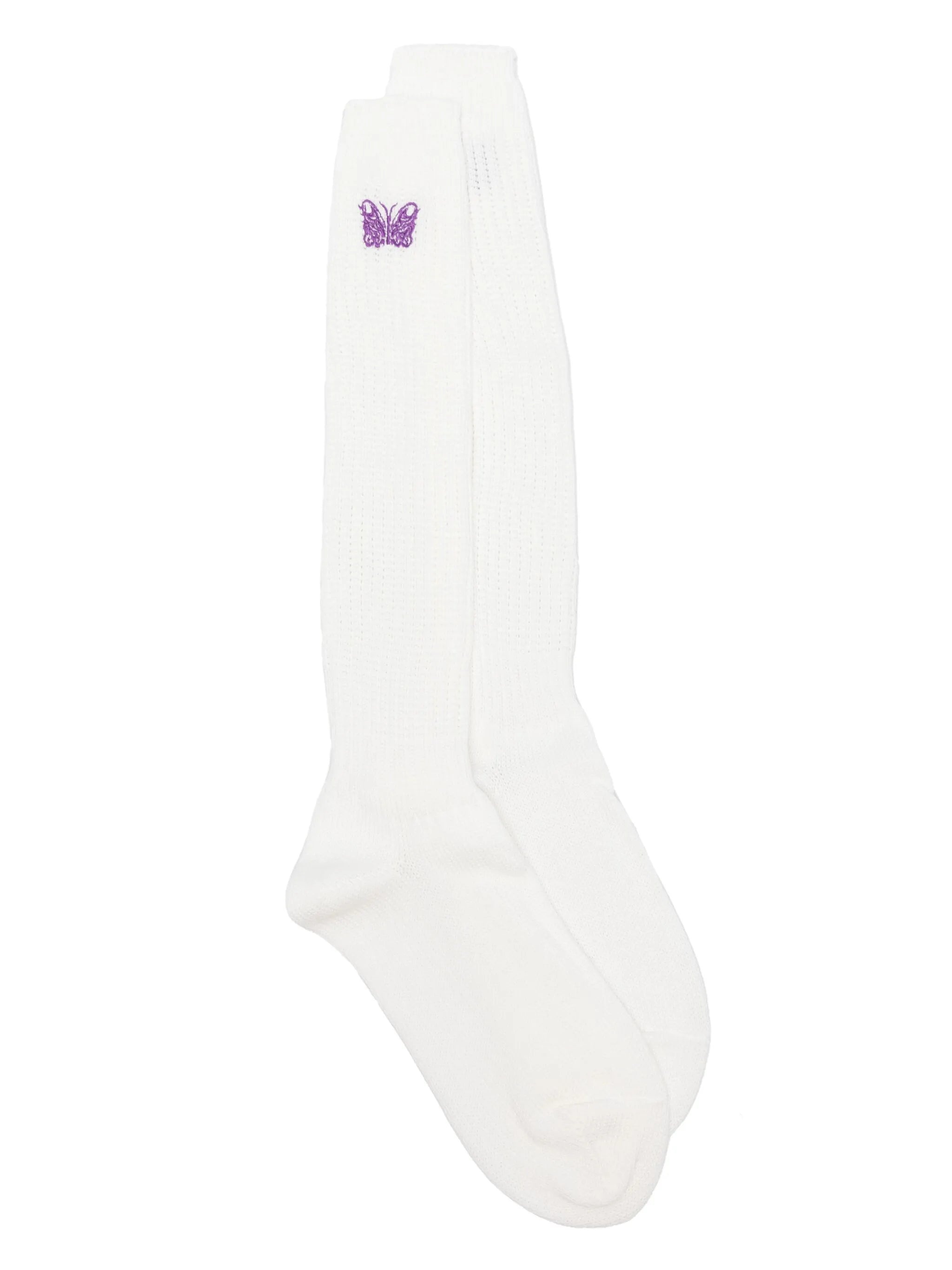 off-white ribbed ankles embroidered design Be sure before opening, as socks and hosiery can only be returned in their original, unopened packaging. - Color: WHITE - Made in: Japan - Designer Style ID: QV421 OFFWH Composition and care Cotton: 100.0%, Nylon: 100.0%