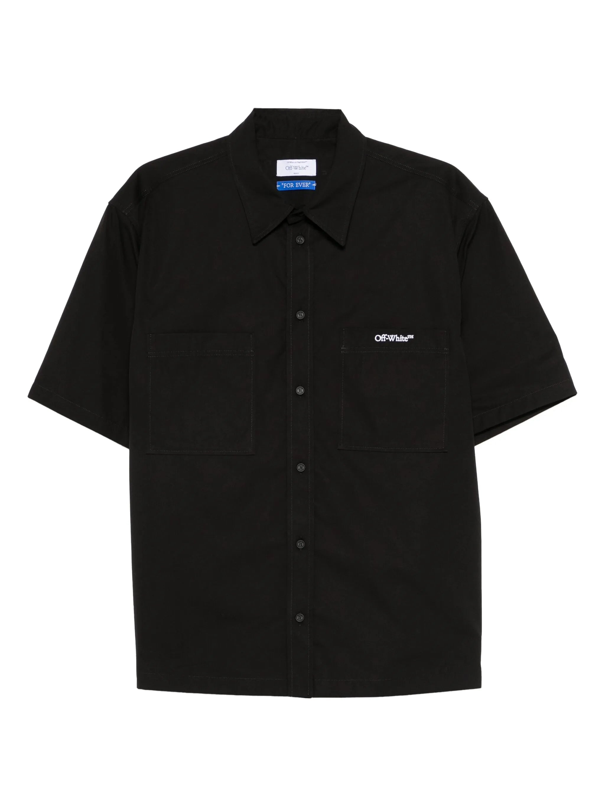 black point collar front button fastening short sleeves chest patch pocket - Color: BLACK - Made in: Italy - Designer Style ID: OMGG002C99FA B002 1001 Composition and care Cotton: 100.0%